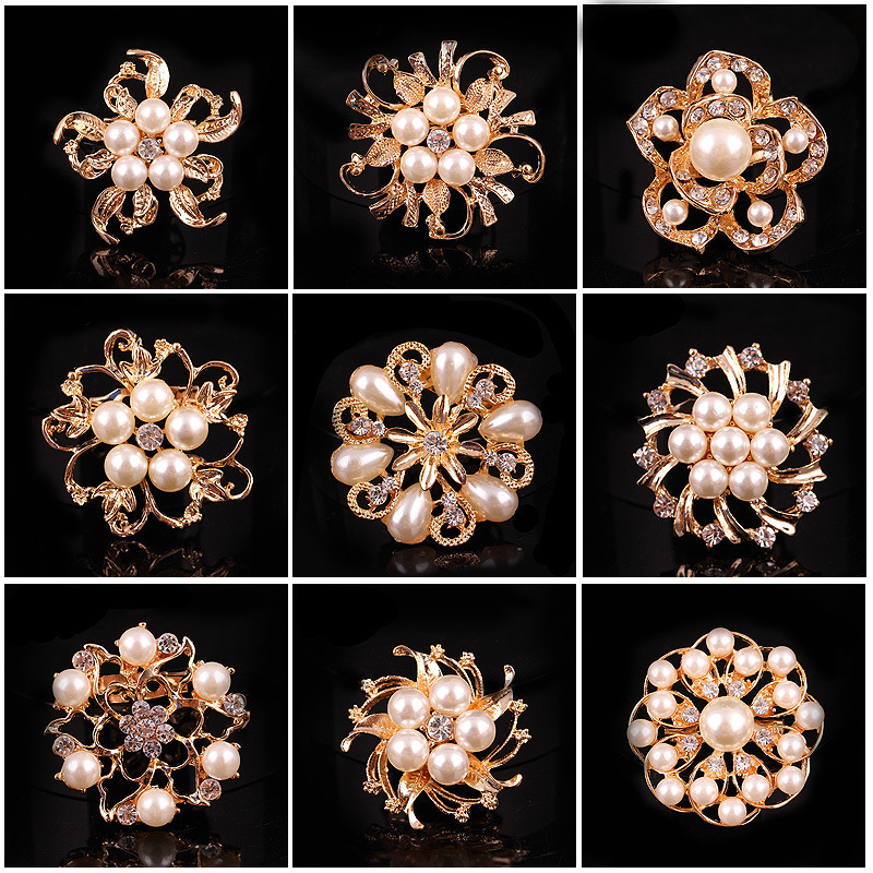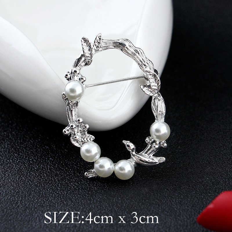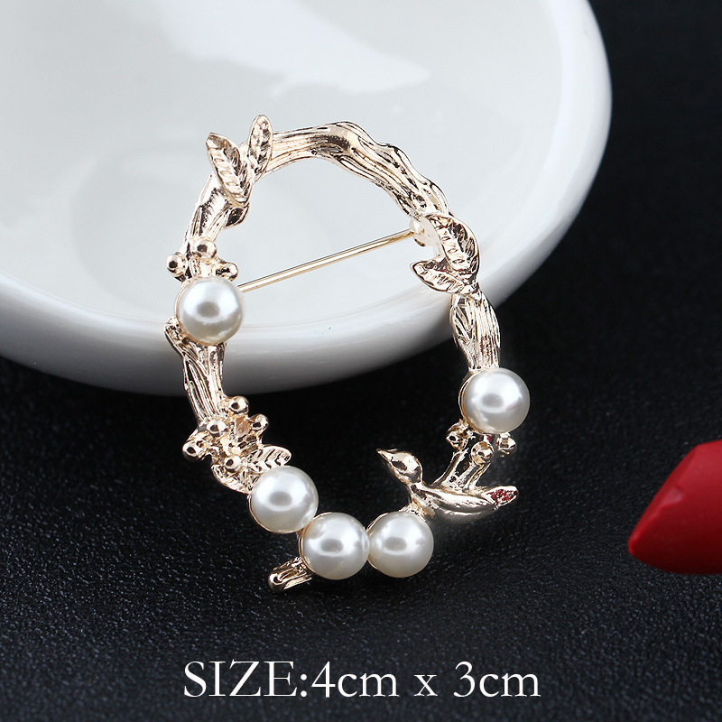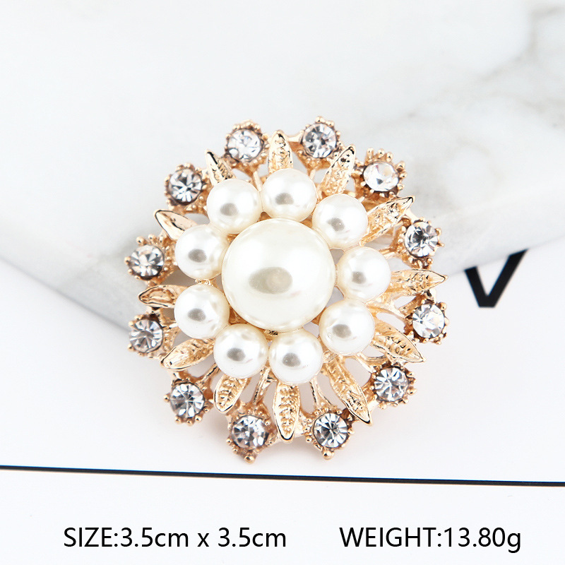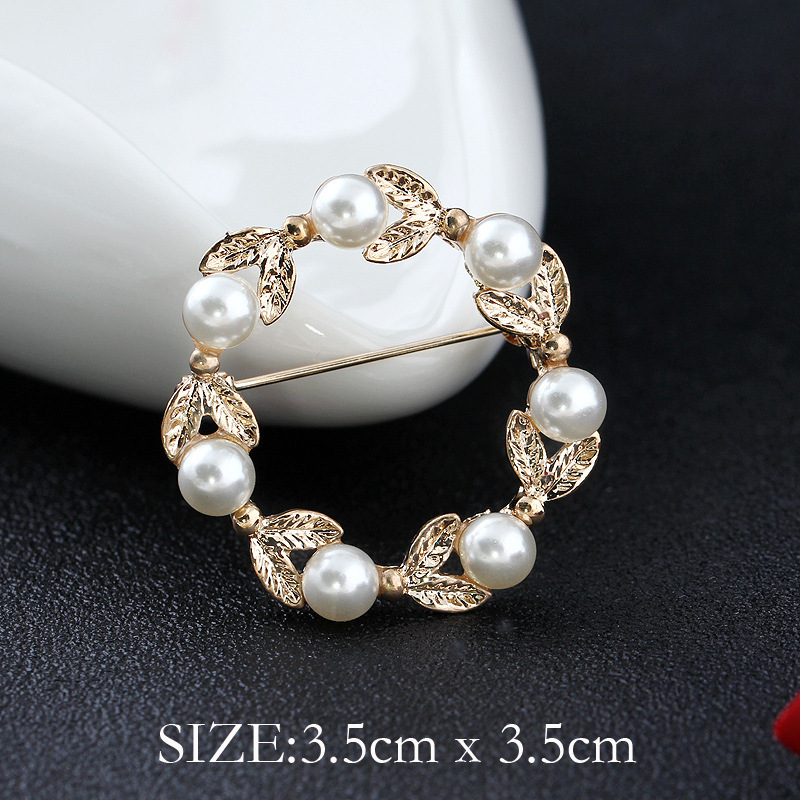 韩版百搭珍珠花环小胸针胸花别针女时尚水钻衣饰配饰批发一件代发