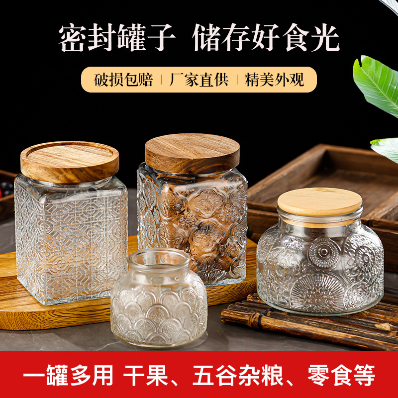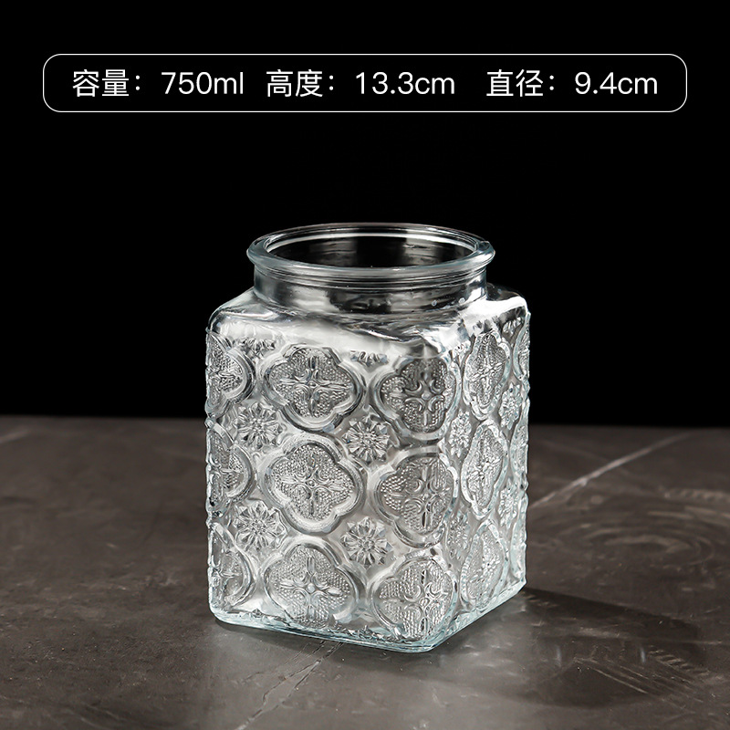 方形海棠玻璃密封罐储存罐零食干果罐分装瓶厨房收纳罐茶叶糖果罐