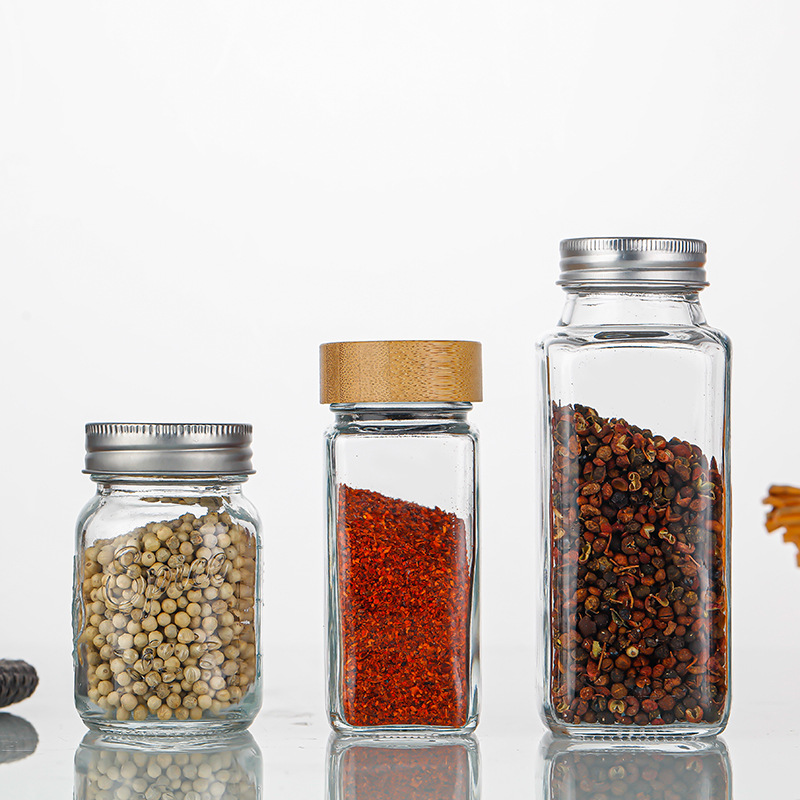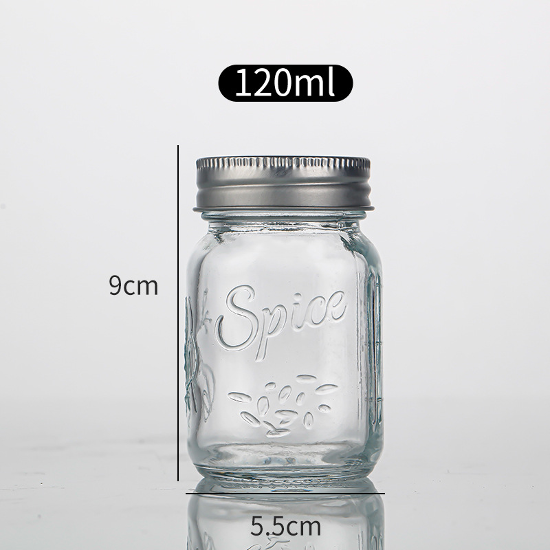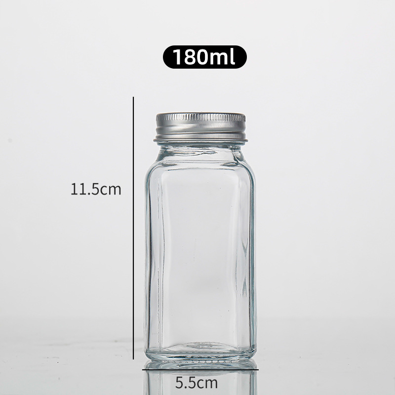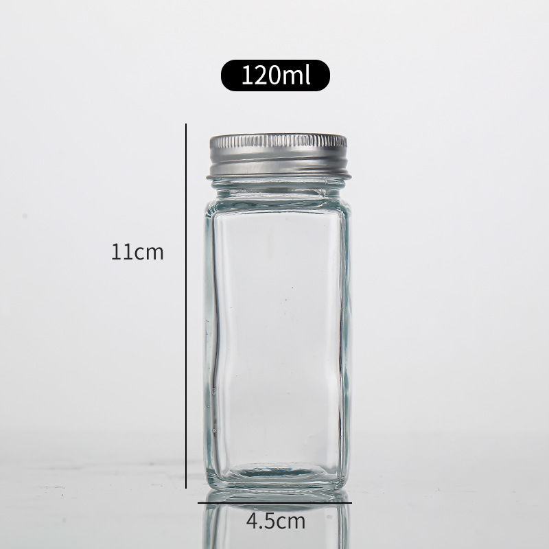 家用120ml方形多孔透明玻璃调料瓶孜然粉烧烤撒料瓶胡椒粉瓶