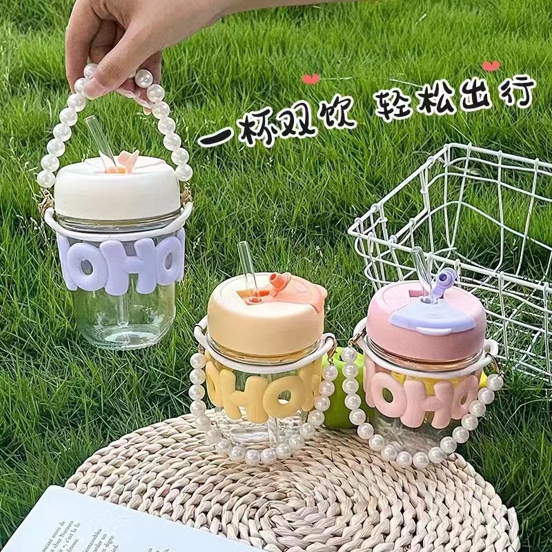水杯夏季高颜值杯子伴手礼便携儿童玻璃杯小礼品赠送咖啡杯吸管杯