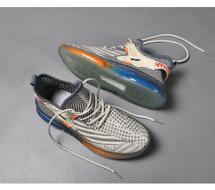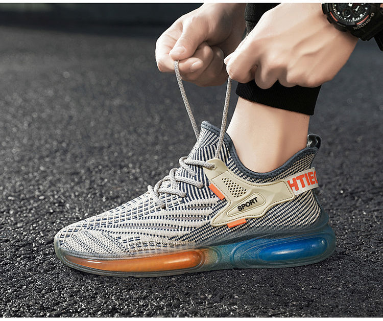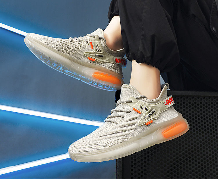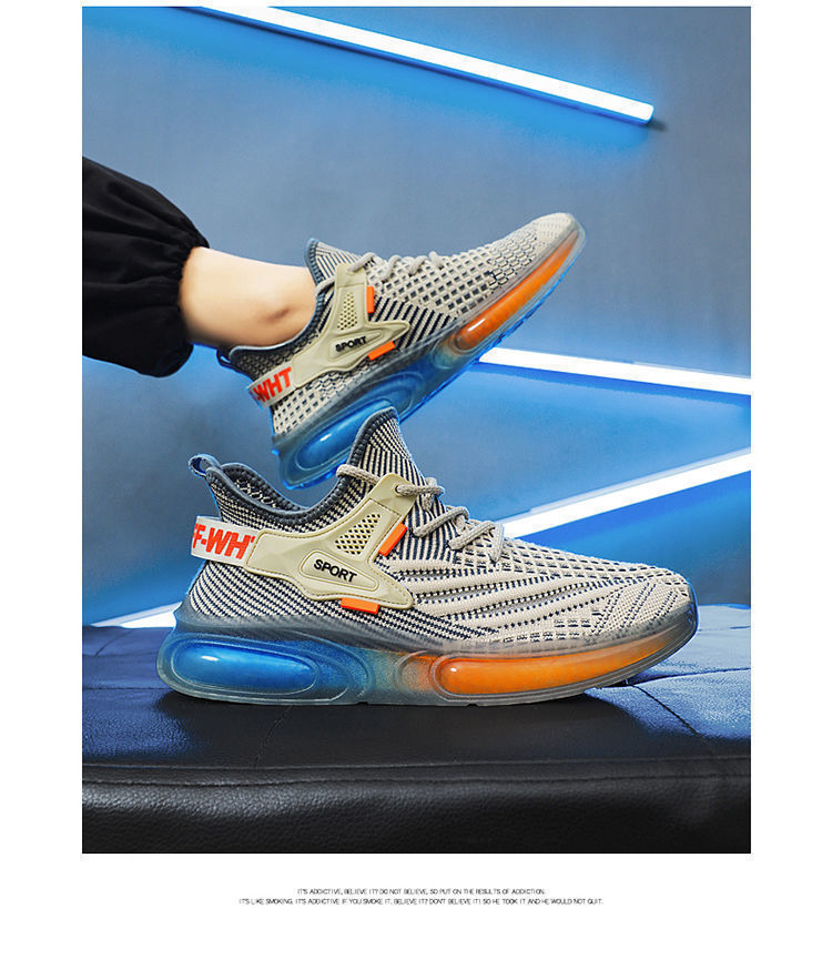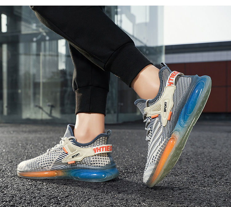 男士运动跑鞋2023夏季新款男鞋果冻底透气网布时尚休闲鞋跑
