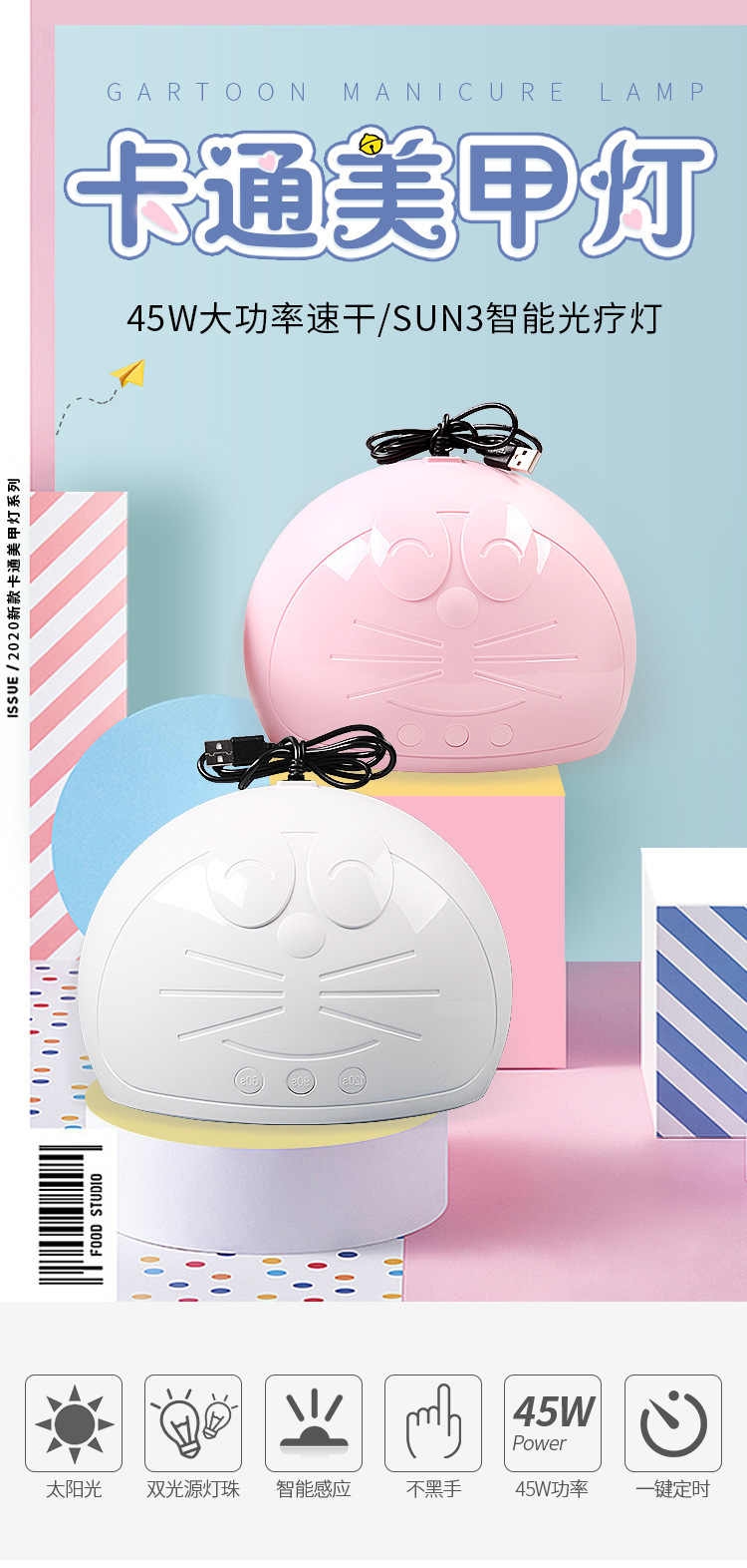 叮当猫美甲光疗灯卡通45W蓝光快干指甲油胶烤灯LED感应厂家直销