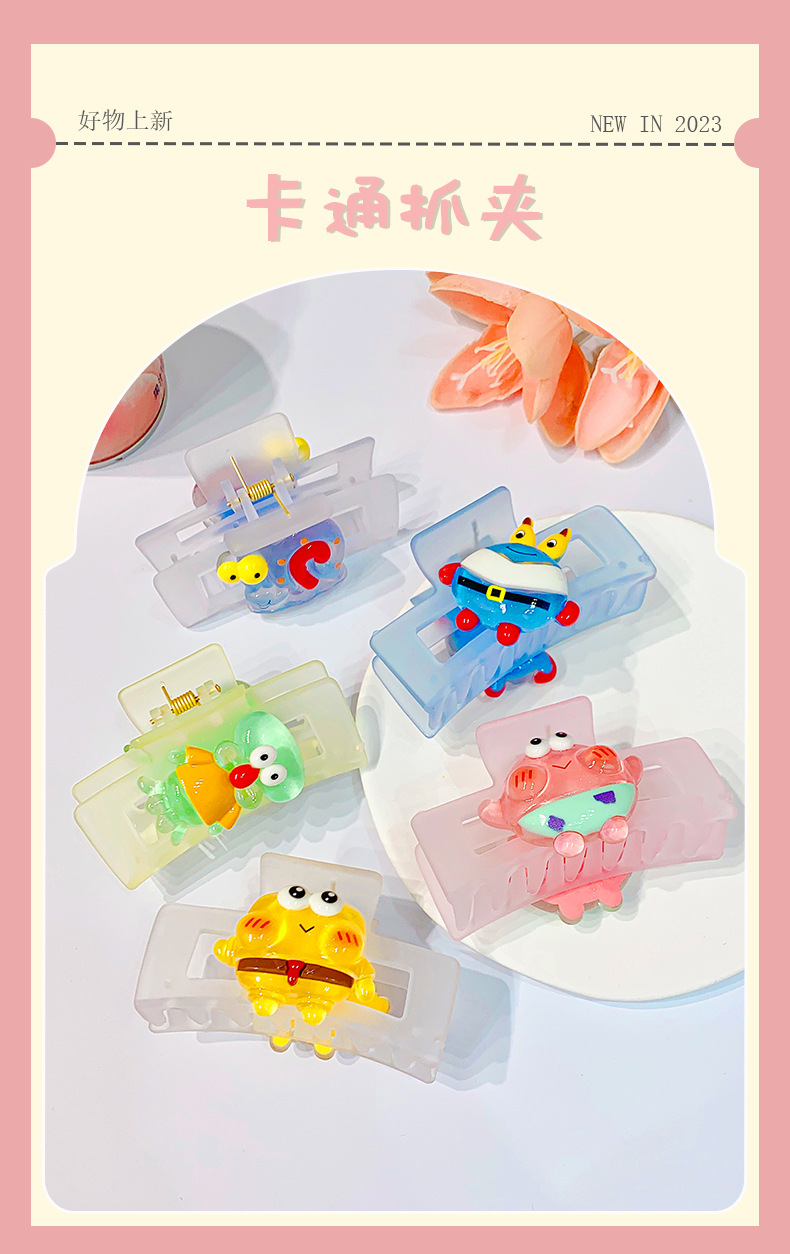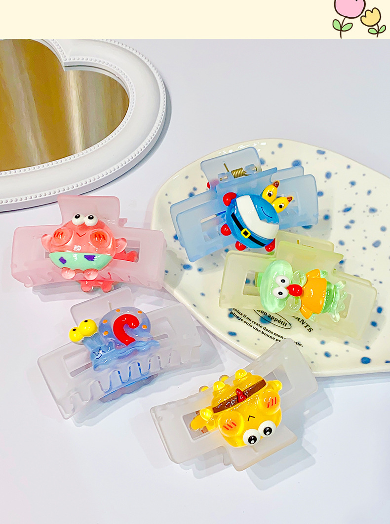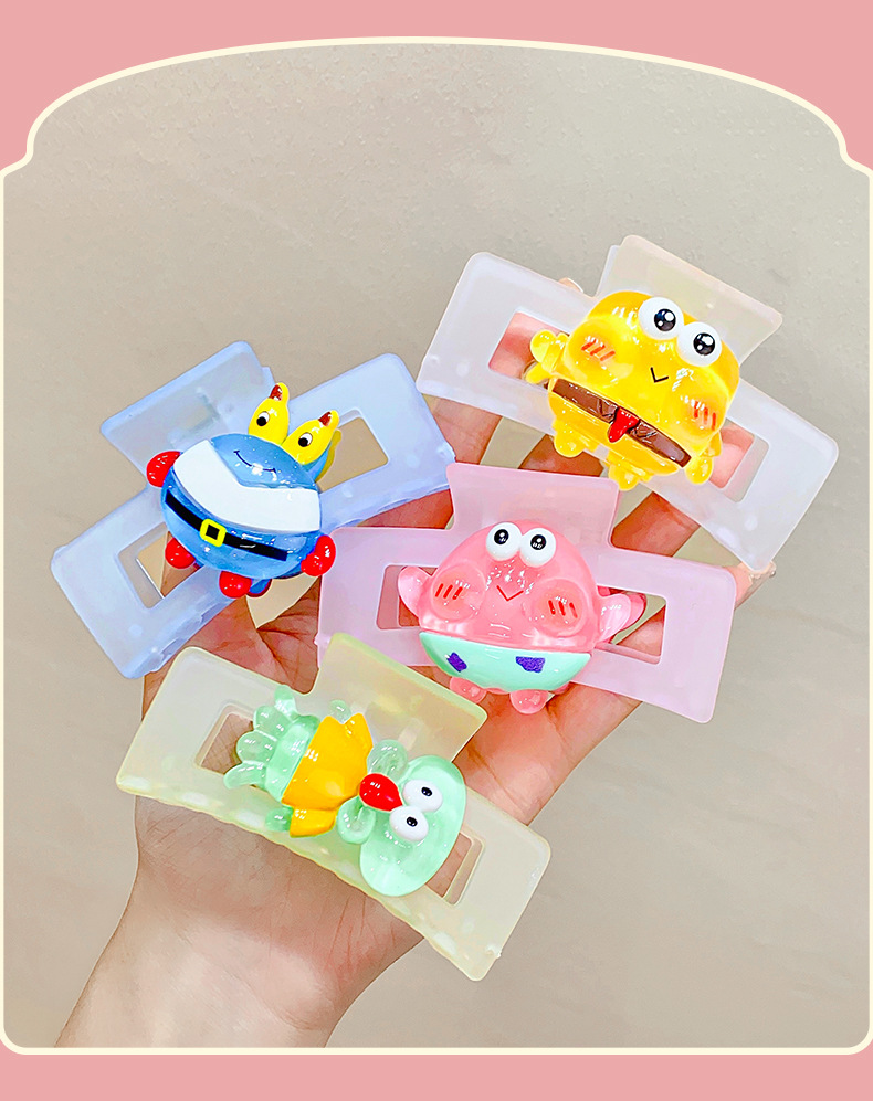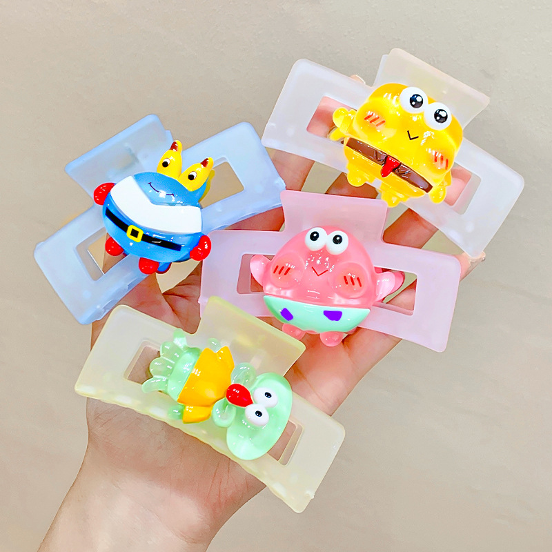 矩形磨砂卡通海绵宝宝系列抓夹鲨鱼夹8.5cm后脑勺盘发卡网红发夹
