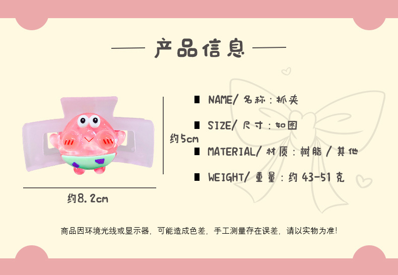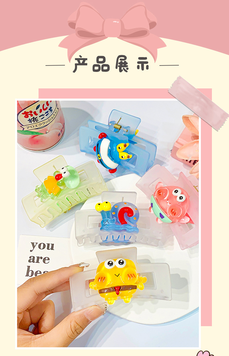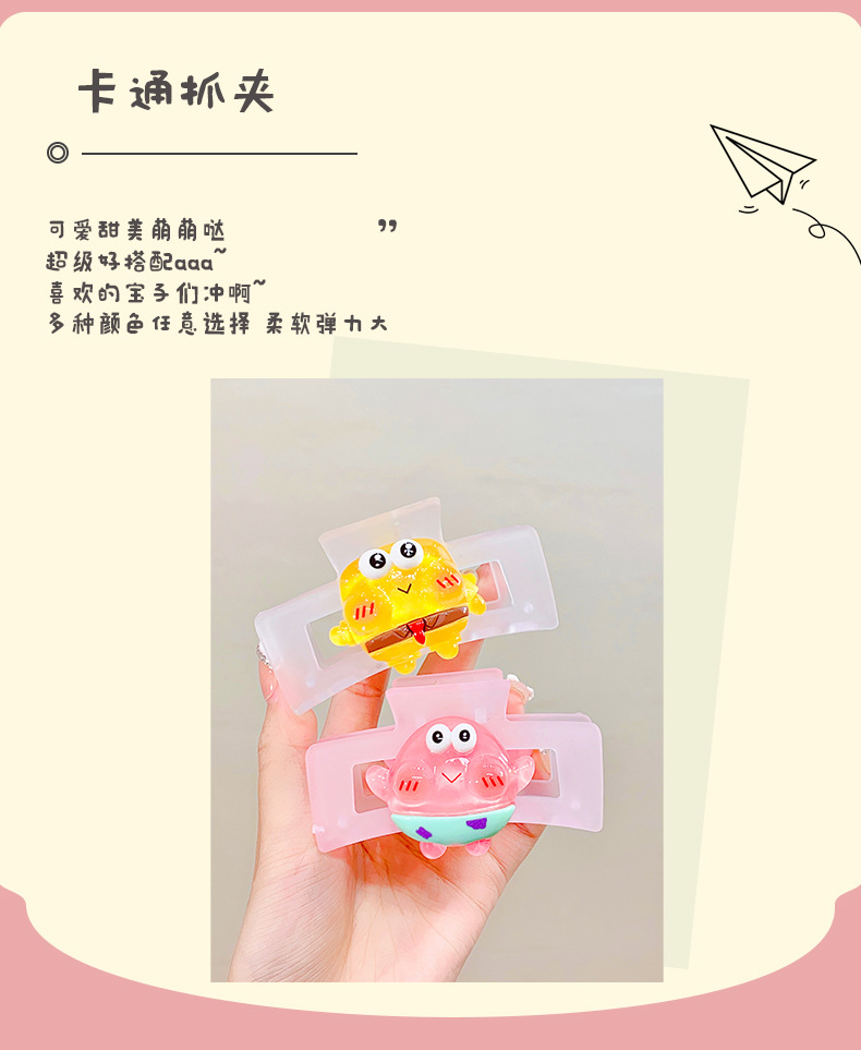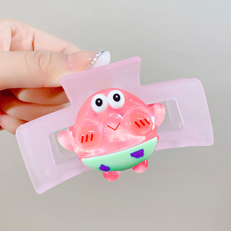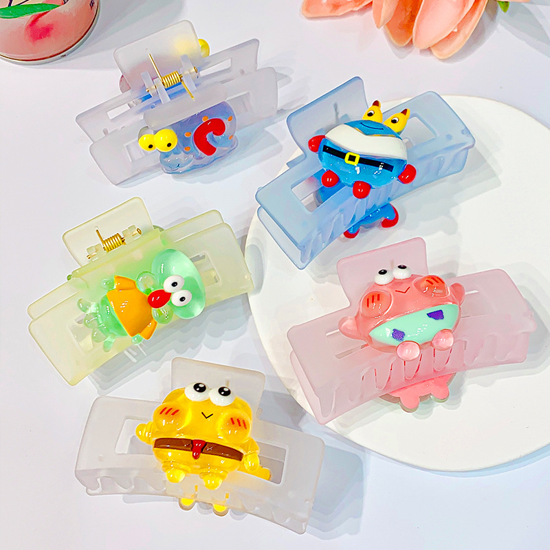 矩形磨砂卡通海绵宝宝系列抓夹鲨鱼夹8.5cm后脑勺盘发卡网红发夹