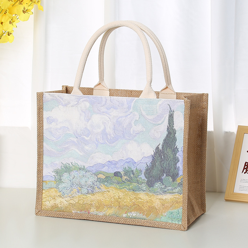 现货批发麻布手提袋 防水印花帆布袋伴手礼购物亚棉麻黄麻袋制定