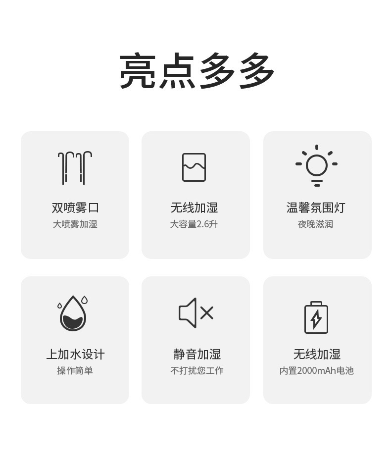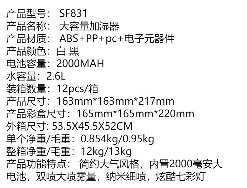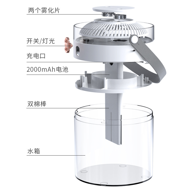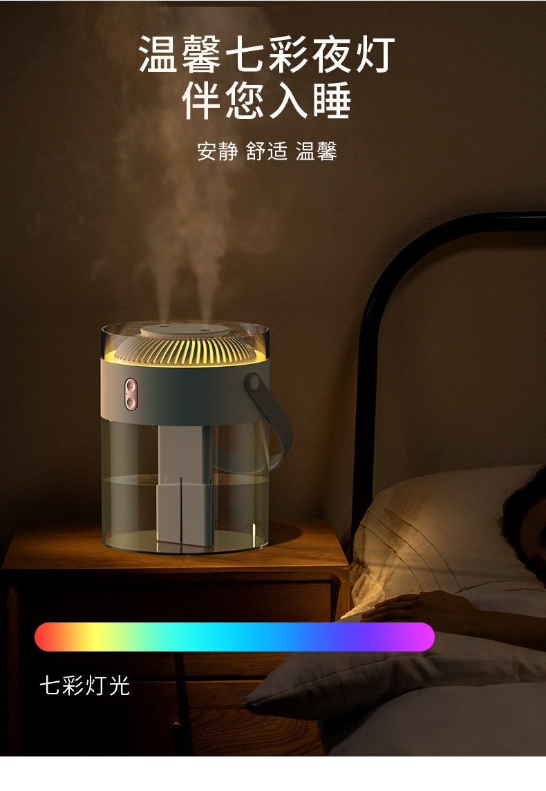 双喷加湿器卧室手提可悬挂空气补水七彩氛围灯静音大雾量香薰机