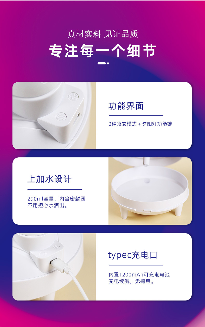 LT-9056夕阳灯加湿器USB 办公室家用香薰桌面大喷雾加湿器