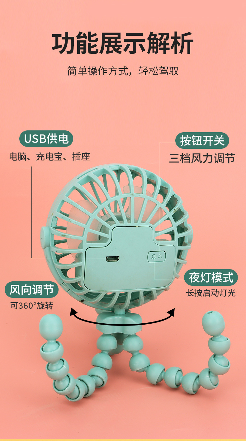 21A八爪风扇mini静音电脑宿舍手持婴儿推车变形支架小风扇