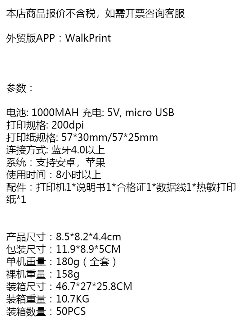 跨境新款口袋无线蓝牙错题打印机Mini printer 便携式热敏打印机