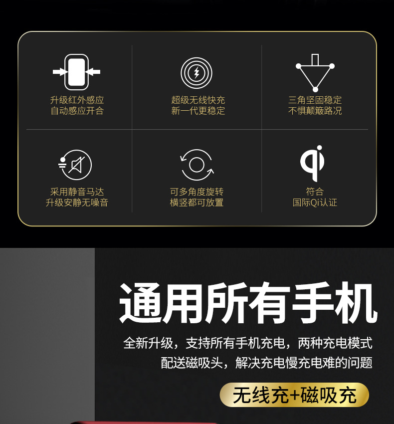 车载手机支架出风口汽车仪表台智能多功能电动无线充车载手机支架