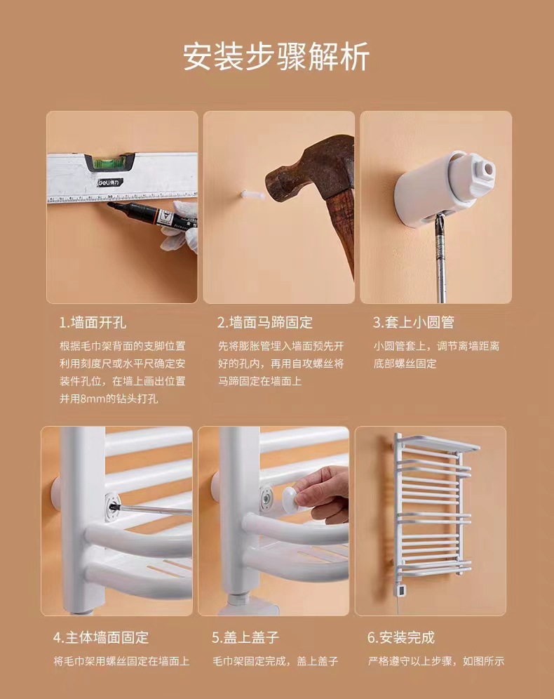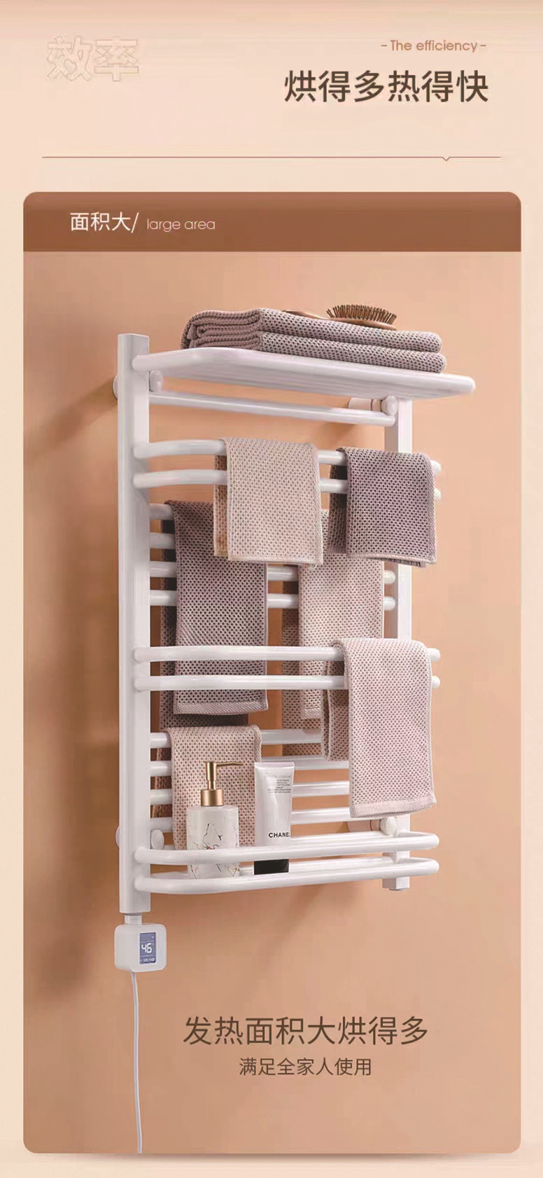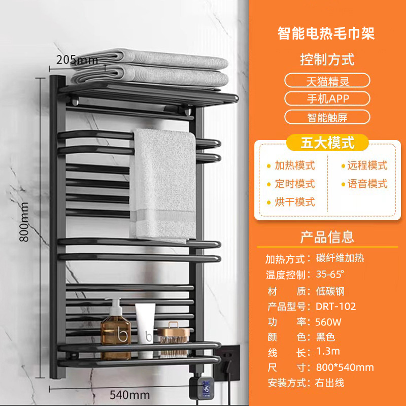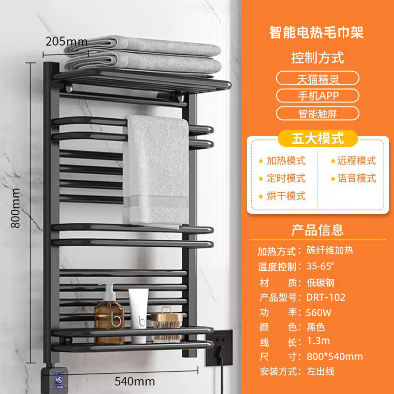碳纤维智能电热毛巾架家用卫生间发热烘干浴巾架置物架加热