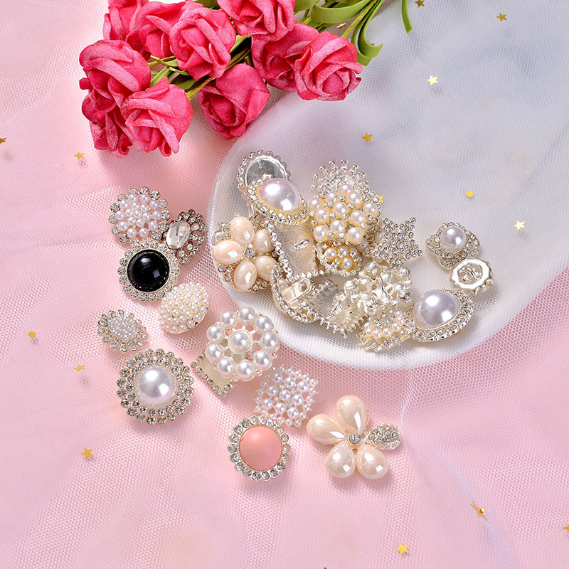 合金钮扣金属扣 珍珠满钻烧焊钮扣 烧焊合金底点钻纽扣饰品配件