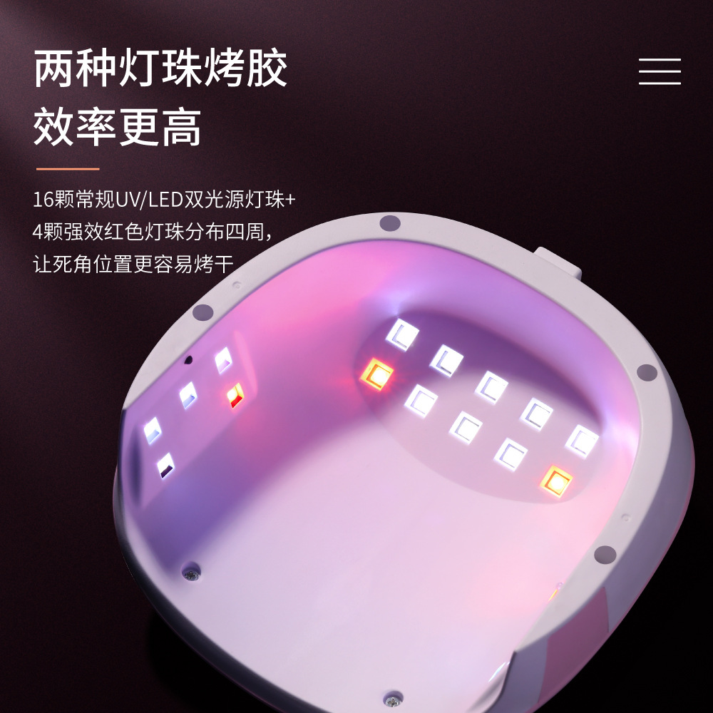 新款60W甲油胶美甲灯 USB红蓝光UV美甲机不黑手双光源指甲烘干机