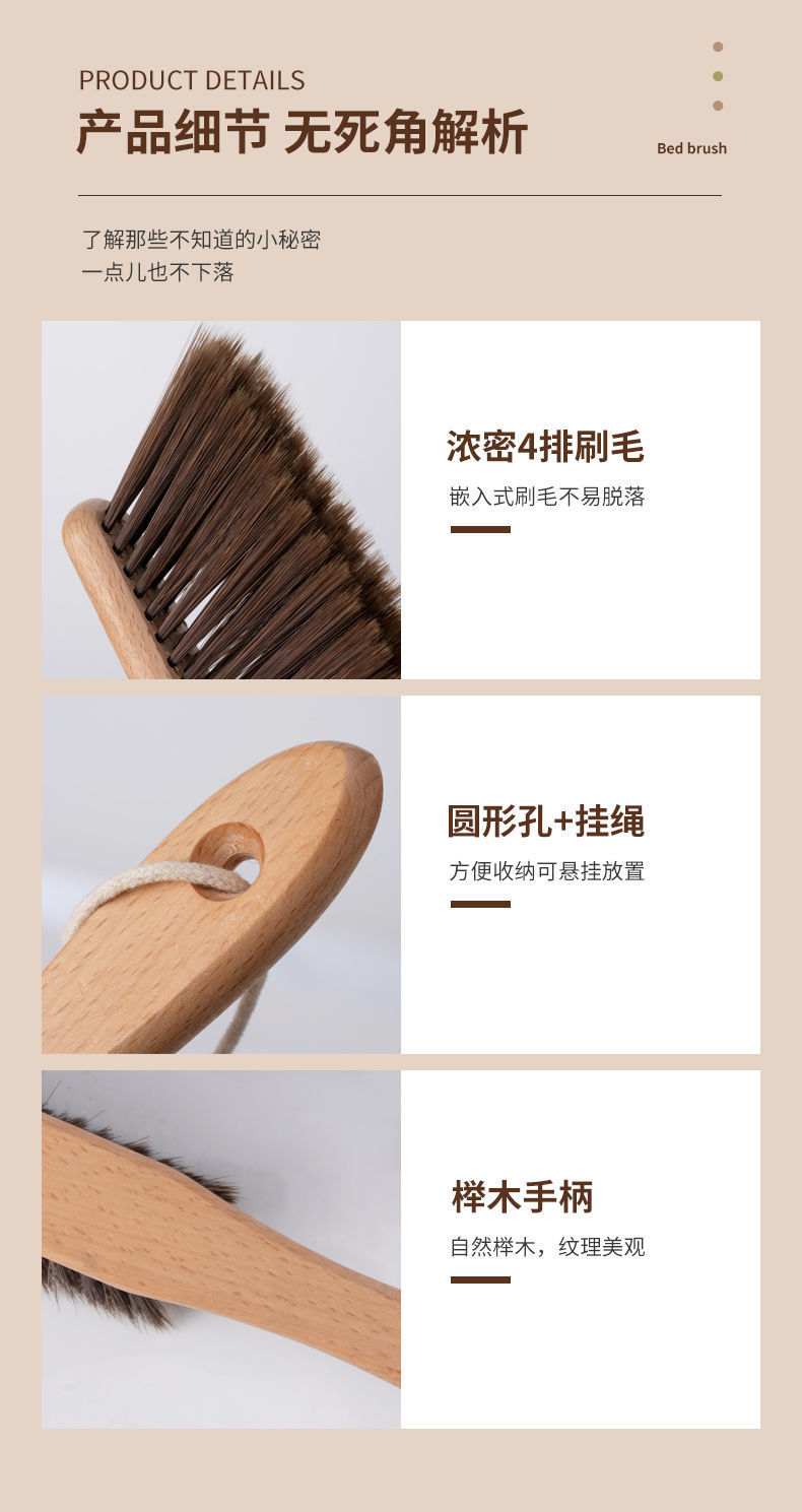 榉木扫床刷防静电家用清洁扫床笤帚床上软毛刷地毯扫床神器除尘