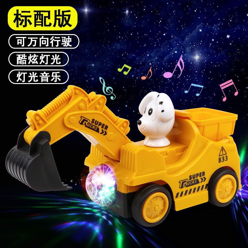 儿童玩具灯光音乐电动发光陀螺 电动挖掘机发光地摊夜市批发