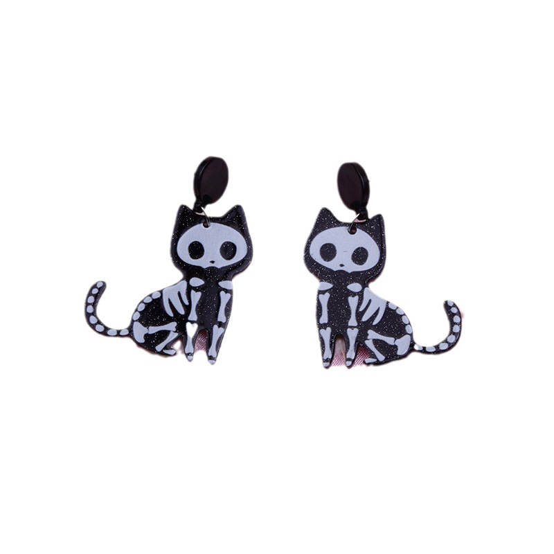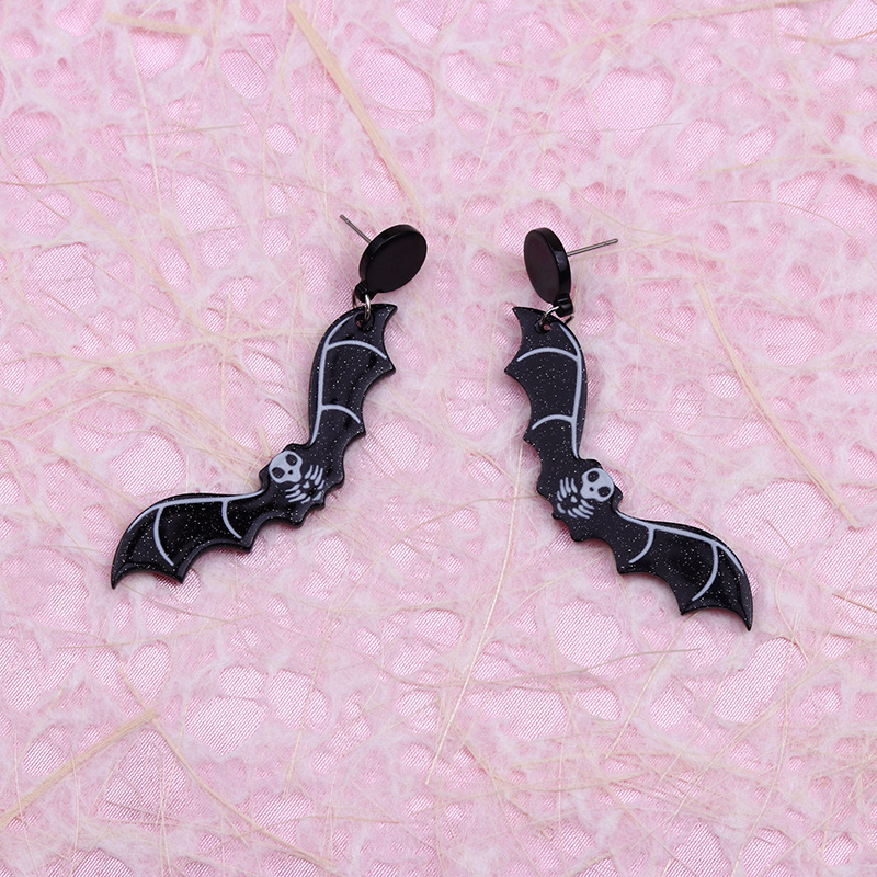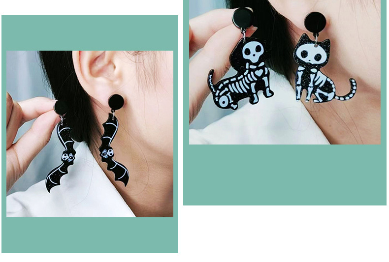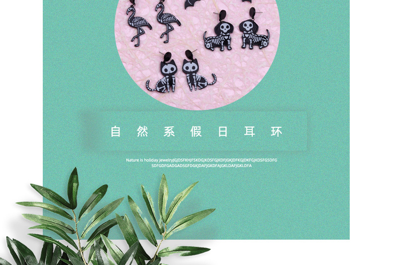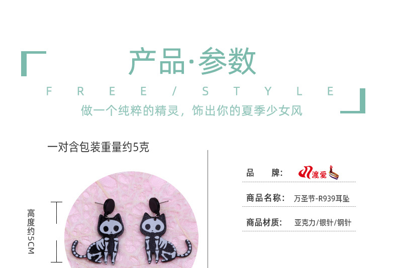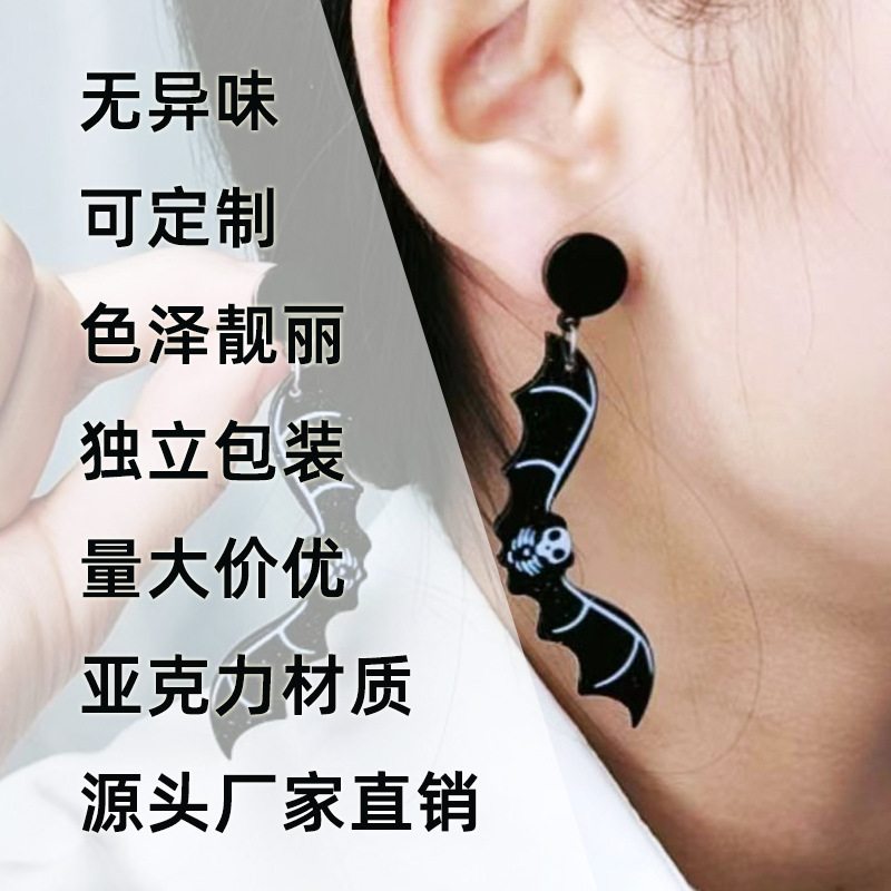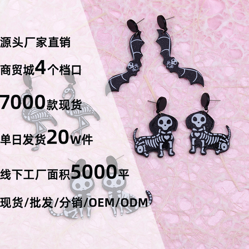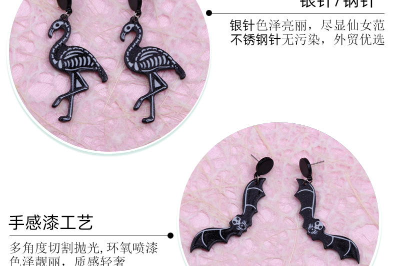 新款万圣节耳钉亚克力耳环时尚个性火烈鸟蝙蝠猫骷髅耳坠耳饰品女