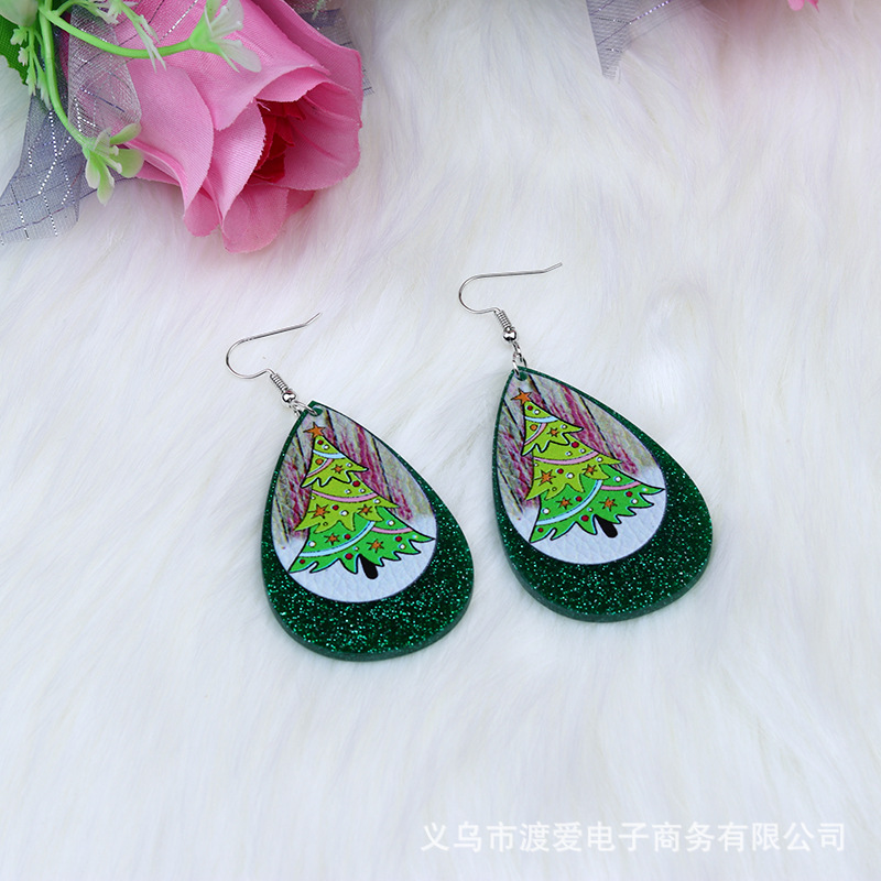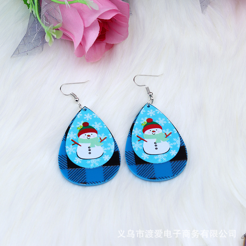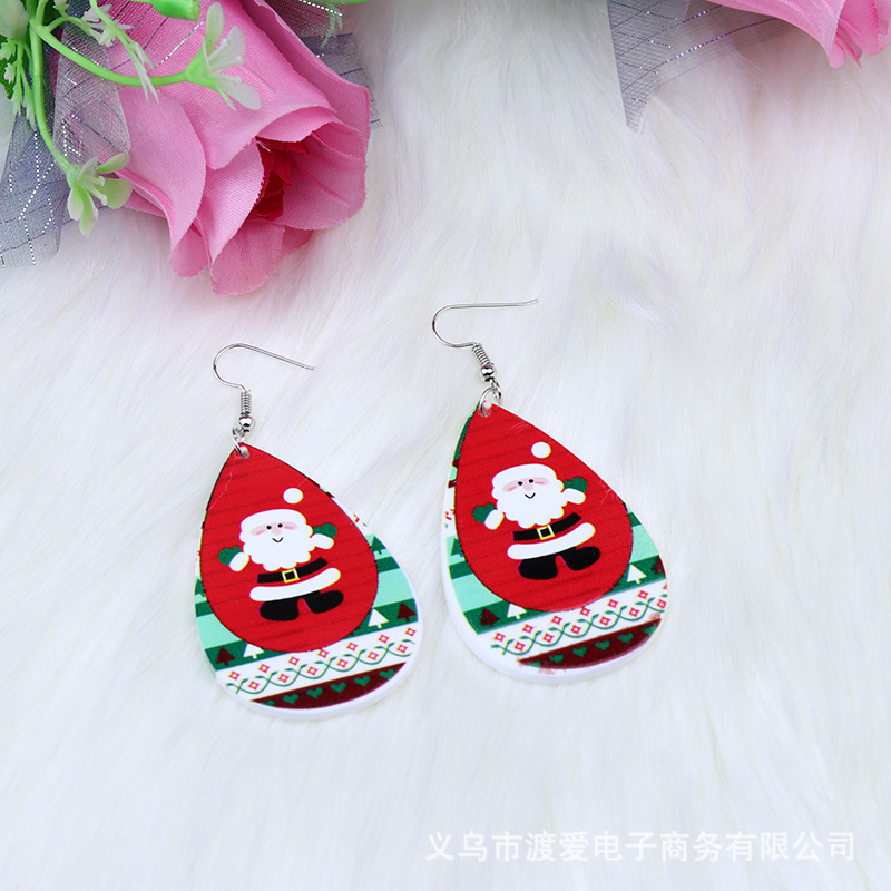 新款印花圣诞节麋鹿雪人老人耳勾耳坠时尚个性水滴耳钉耳环耳饰女