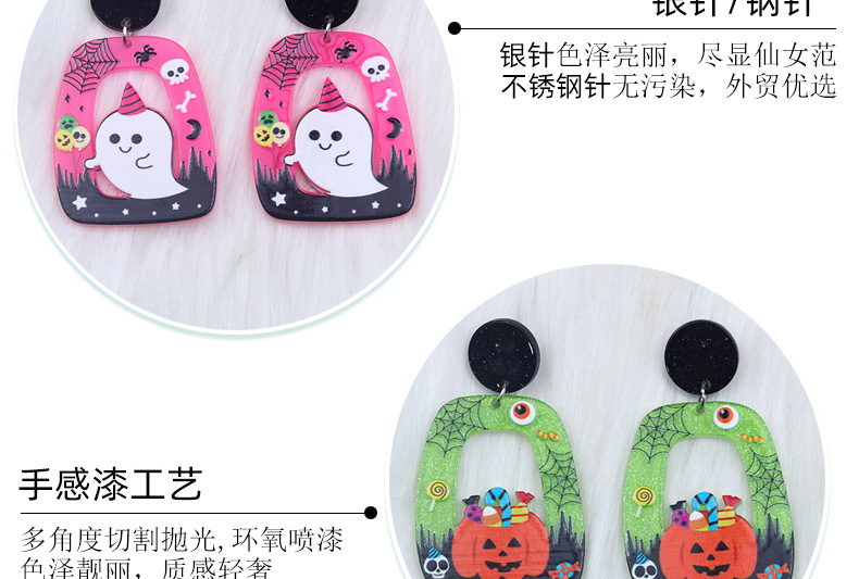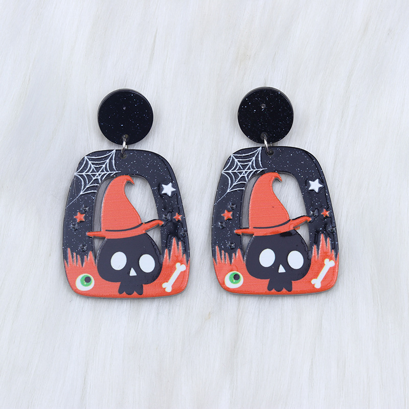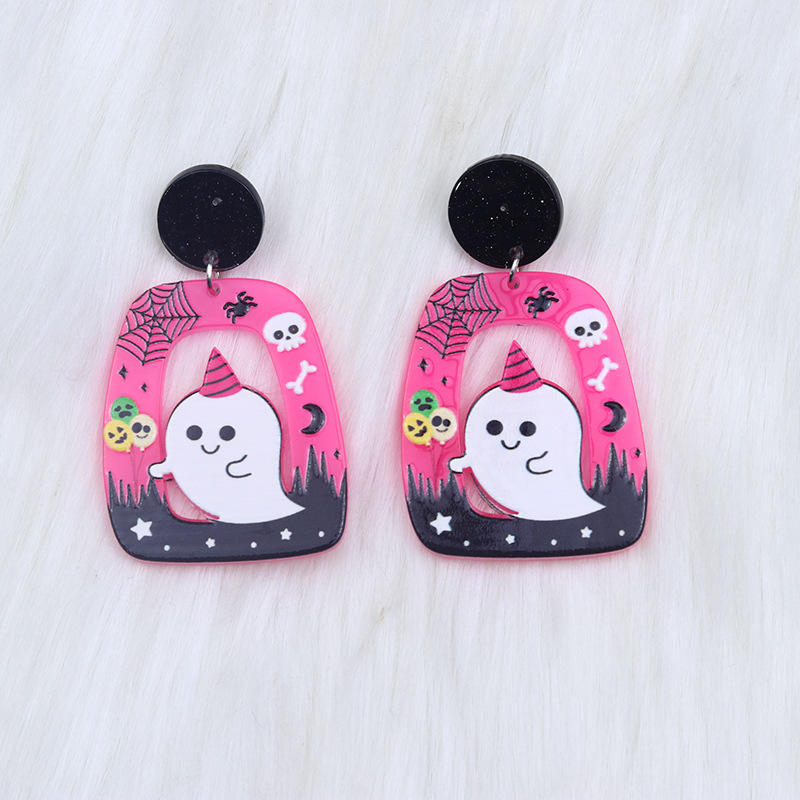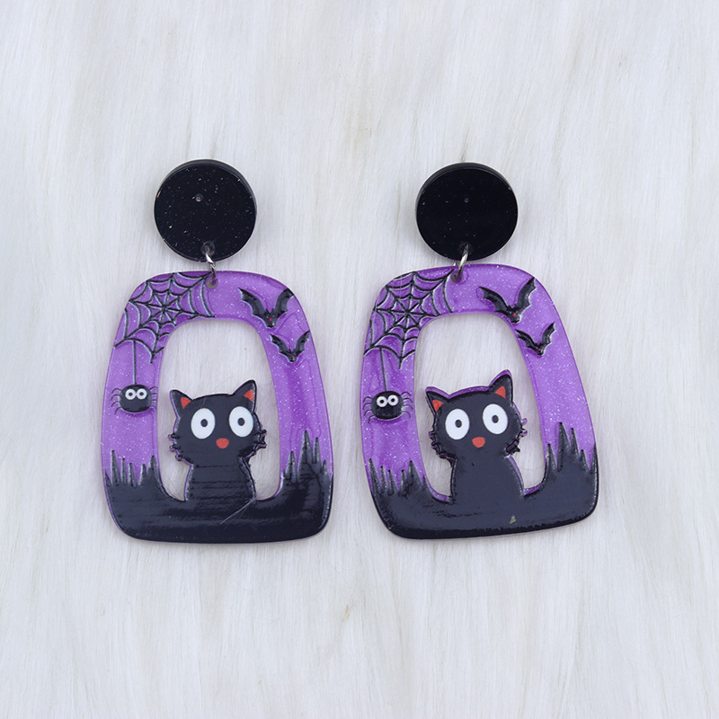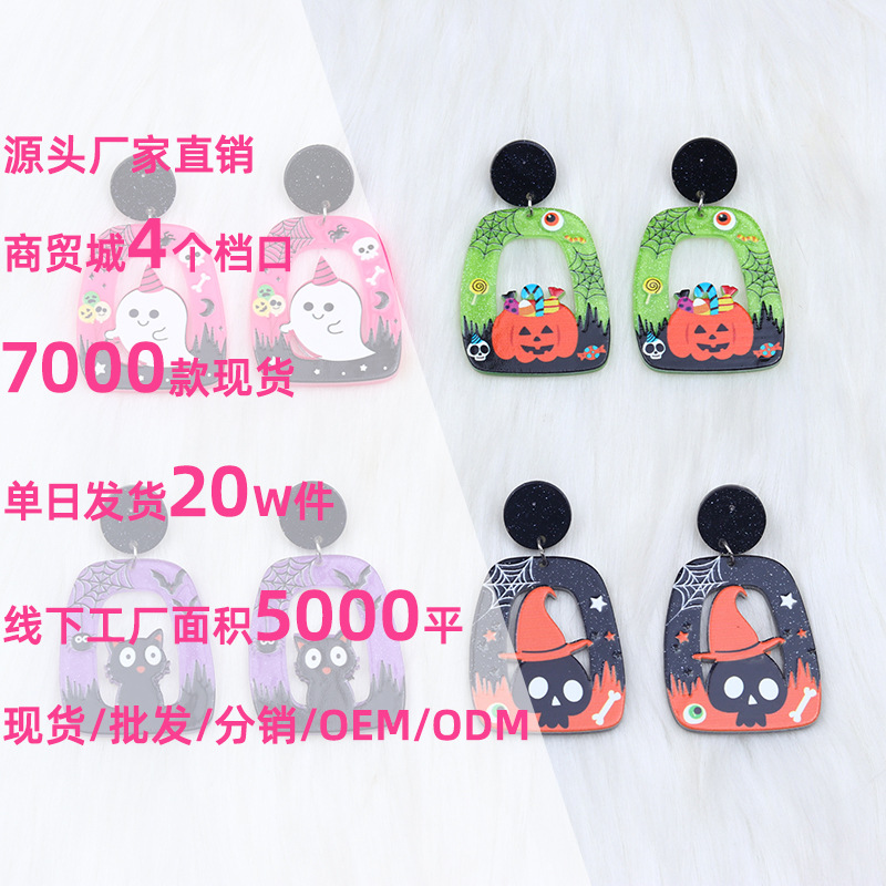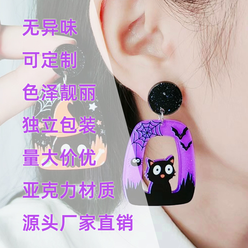 万圣节2023新款方圆形镂空耳环亚克力卡通幽灵南瓜猫咪耳坠耳饰品