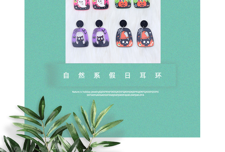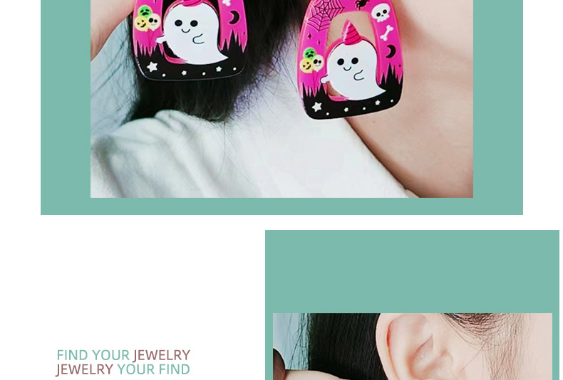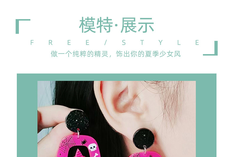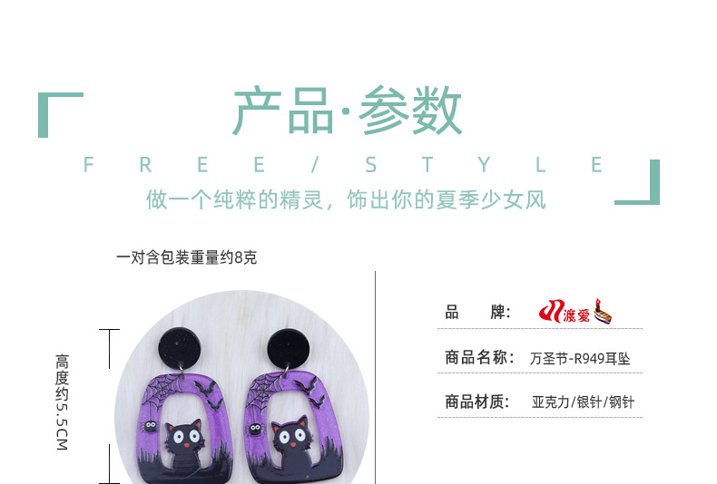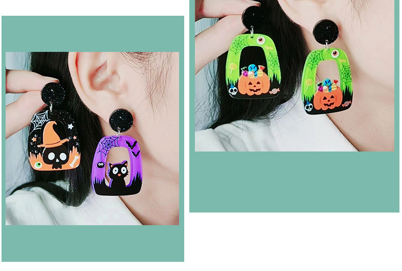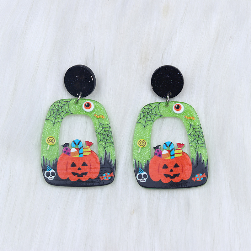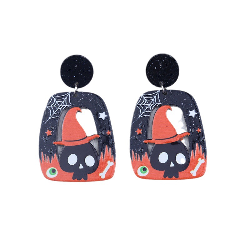 万圣节2023新款方圆形镂空耳环亚克力卡通幽灵南瓜猫咪耳坠耳饰品