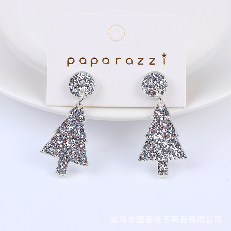 外贸圣诞节圣诞树简约亚克力耳环金色银色耳环亚克力耳钉耳饰