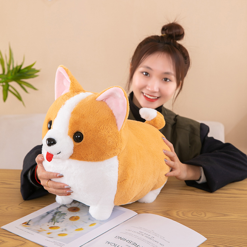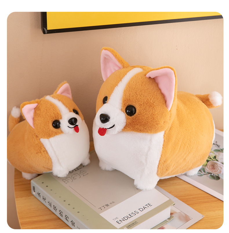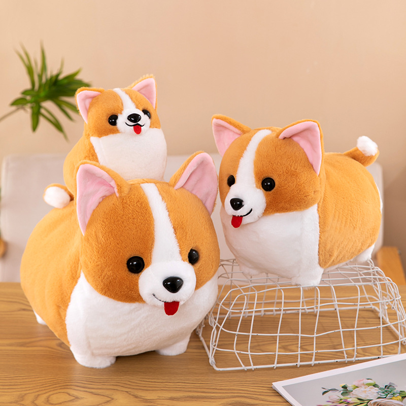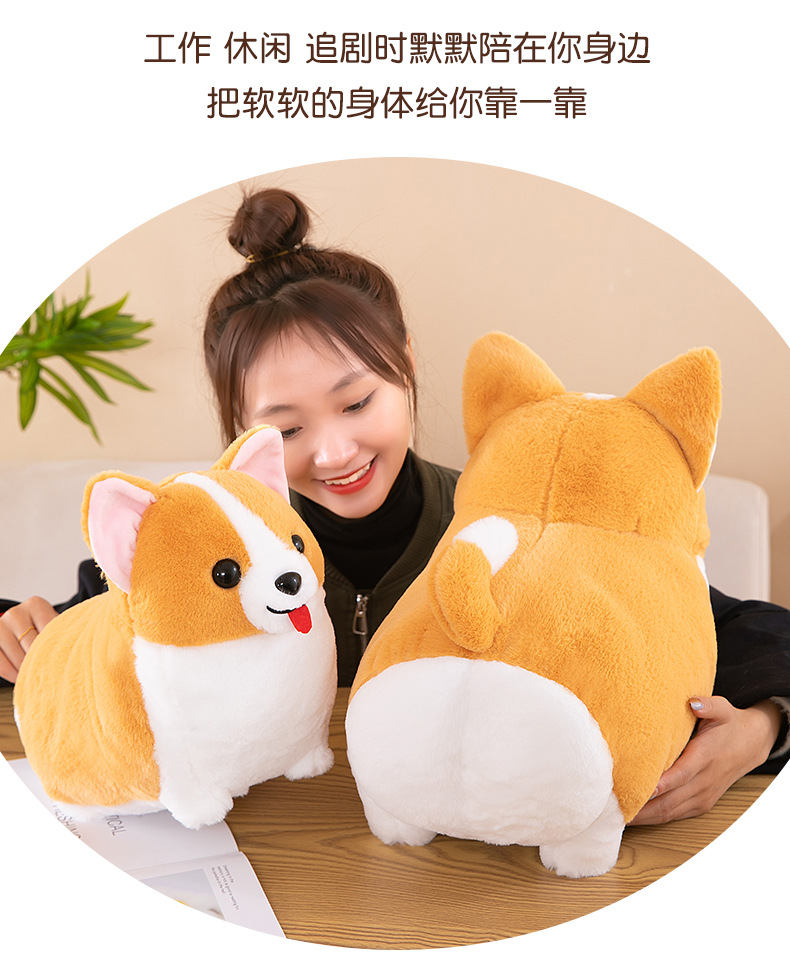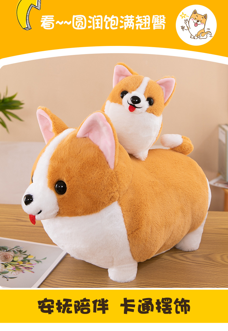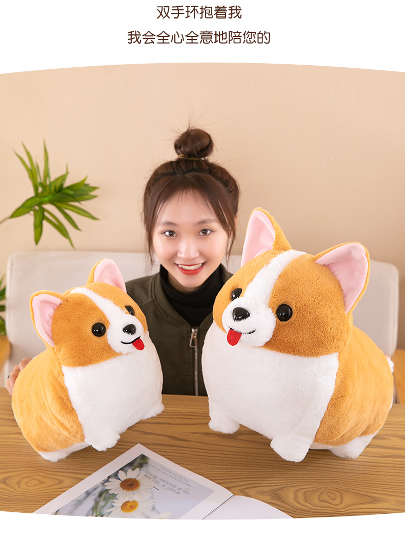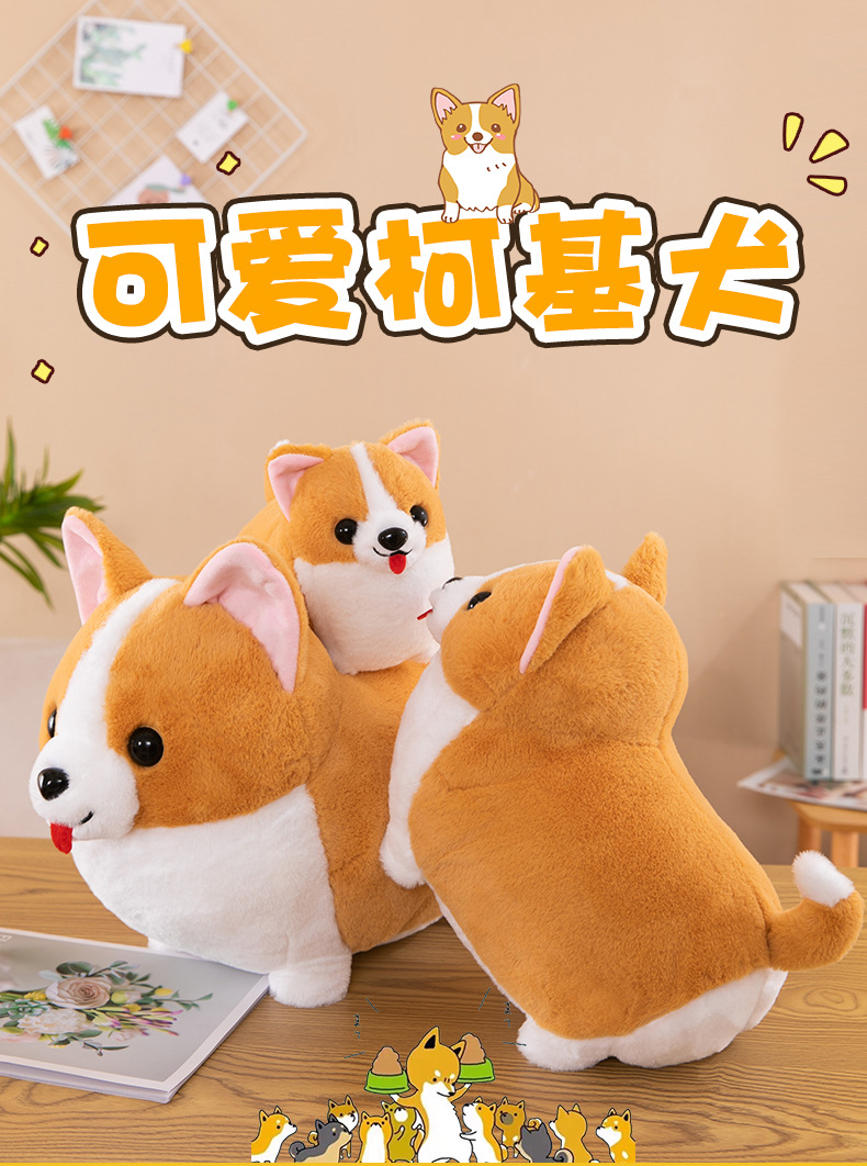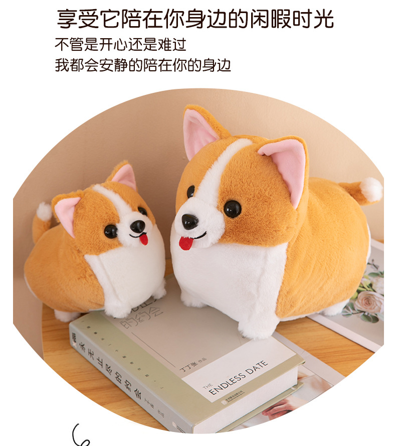 卡通可爱仿真柯基毛绒玩具柴犬公仔床上睡觉玩偶