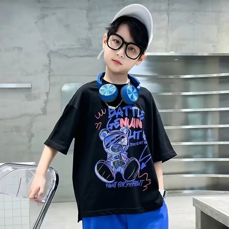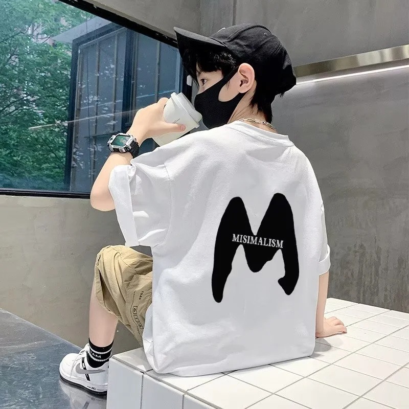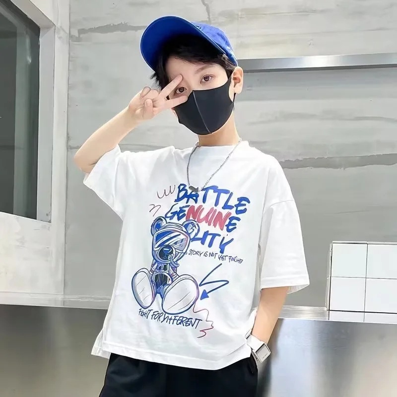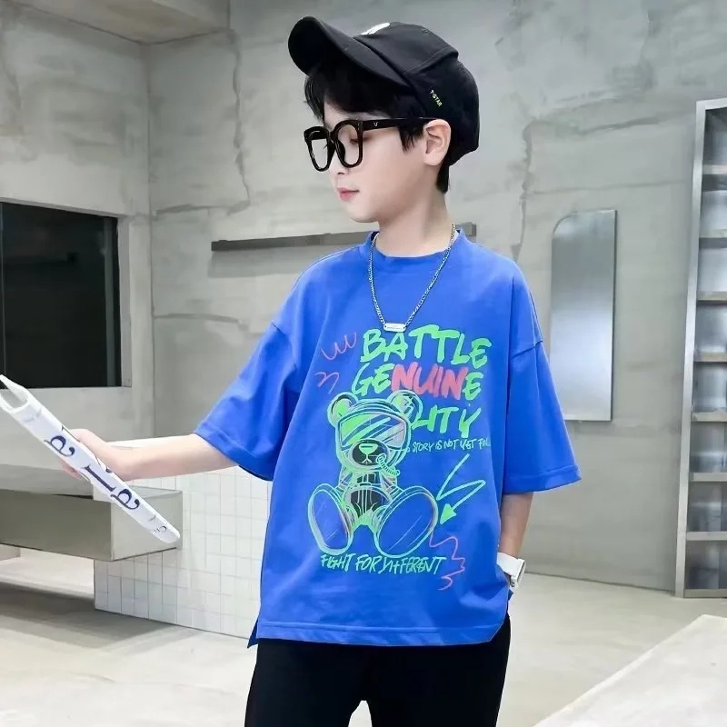 男童t恤短袖2023新款中大童半袖儿童圆领T恤上衣帅气男大童休闲潮