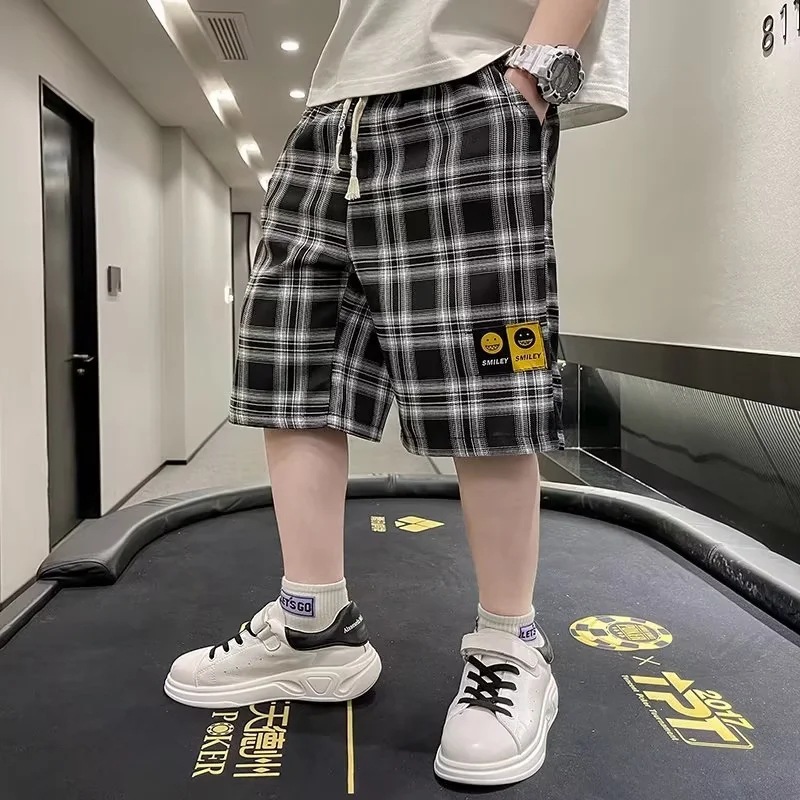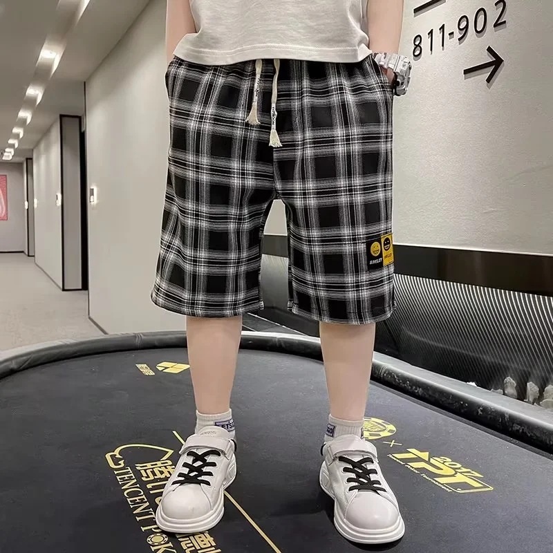 夏季童装简约中大童运动格子短裤2023新款中小学生薄款休闲裤子男