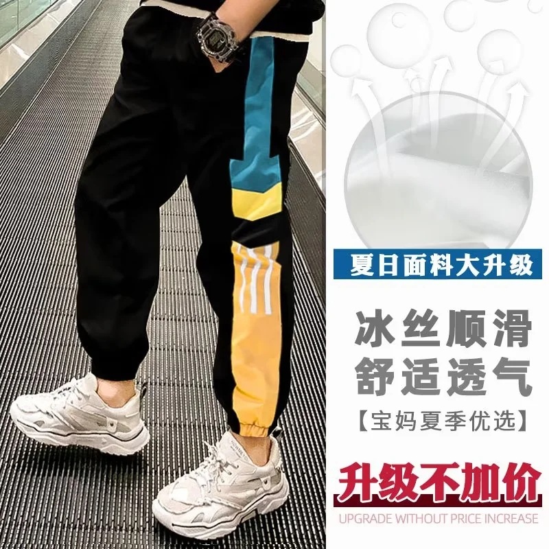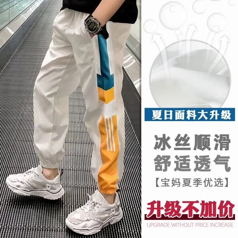 男孩夏季裤子速干中大童白色运动裤夏季薄款儿童帅气时髦防蚊长裤