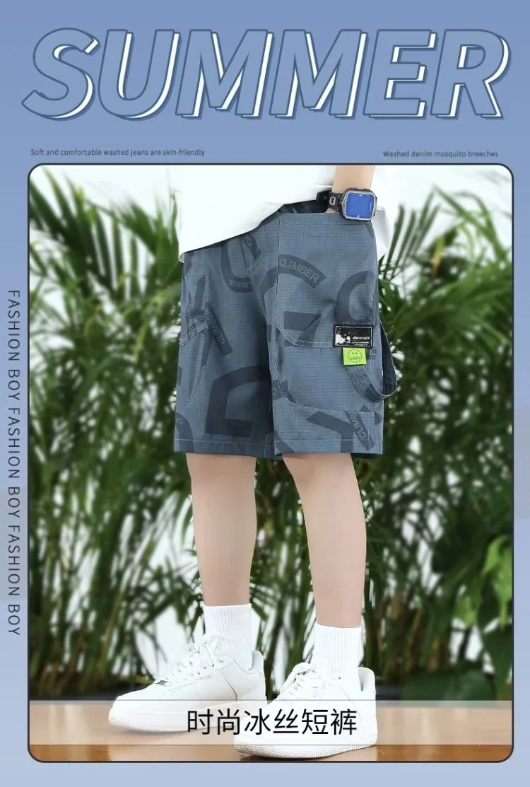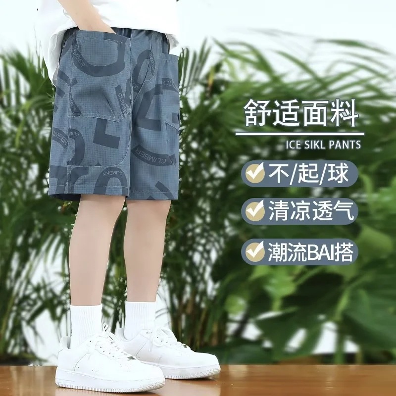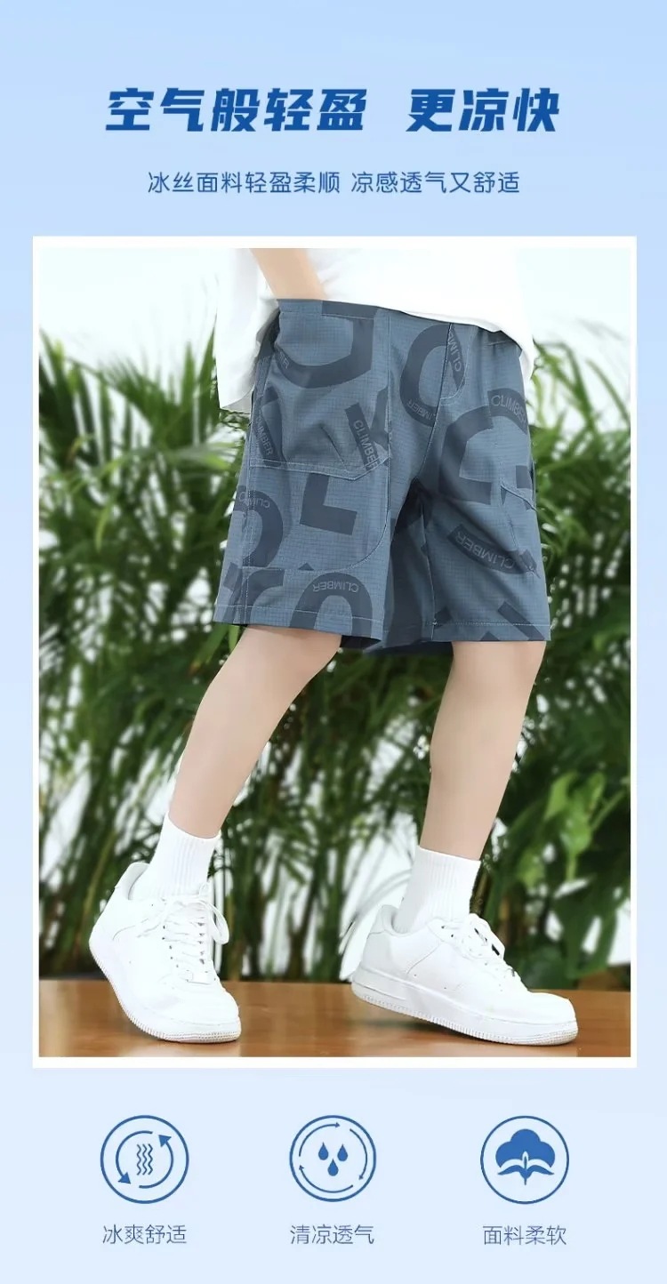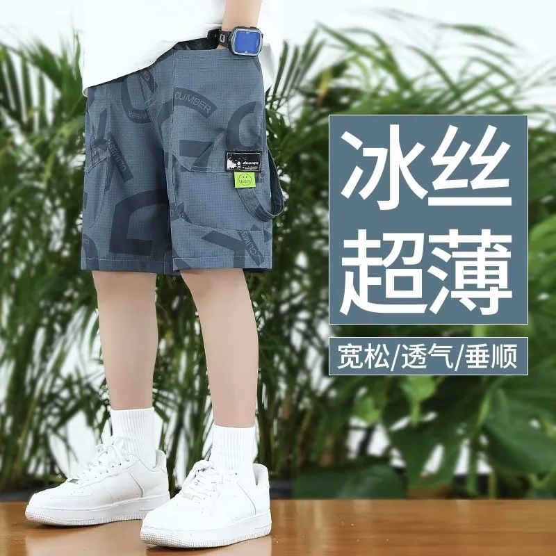 男童裤子夏季薄款2023新款儿童冰丝速干防蚊裤中大童工装运动短裤