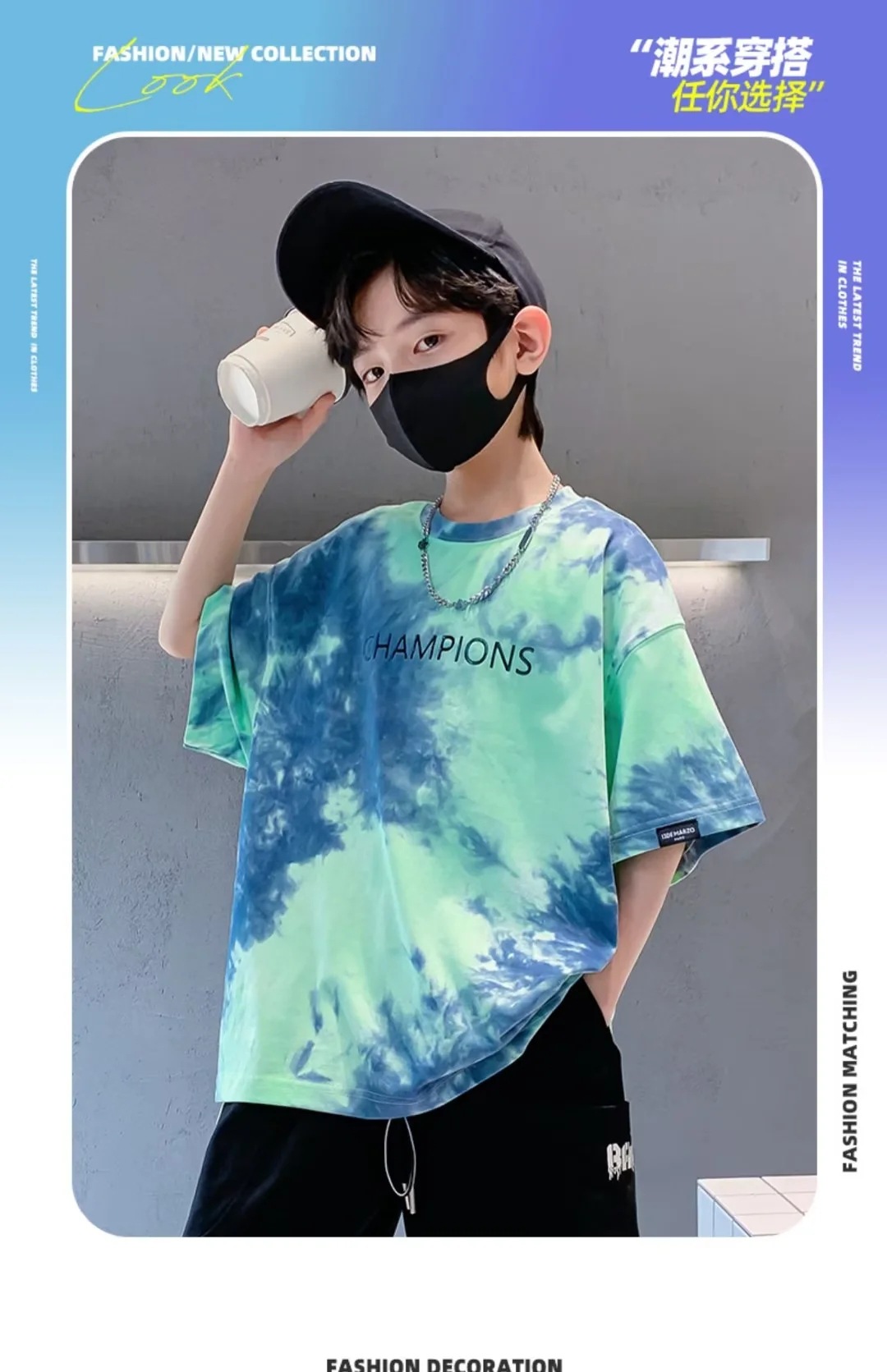 男童夏装短袖T恤2023新款中大儿童夏季男孩潮牌休闲半袖体恤上衣