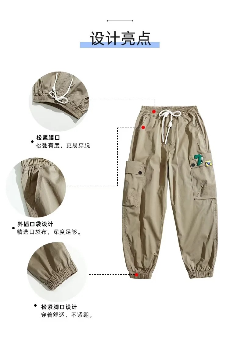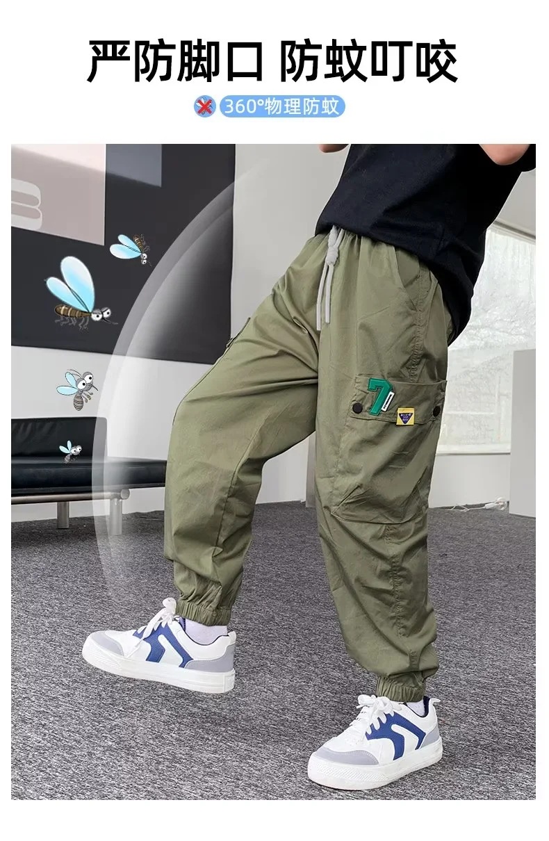 男童工装防蚊裤2023新款夏季大童帅气裤子薄儿童速干休闲长裤男孩