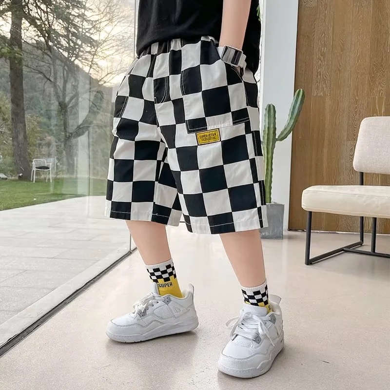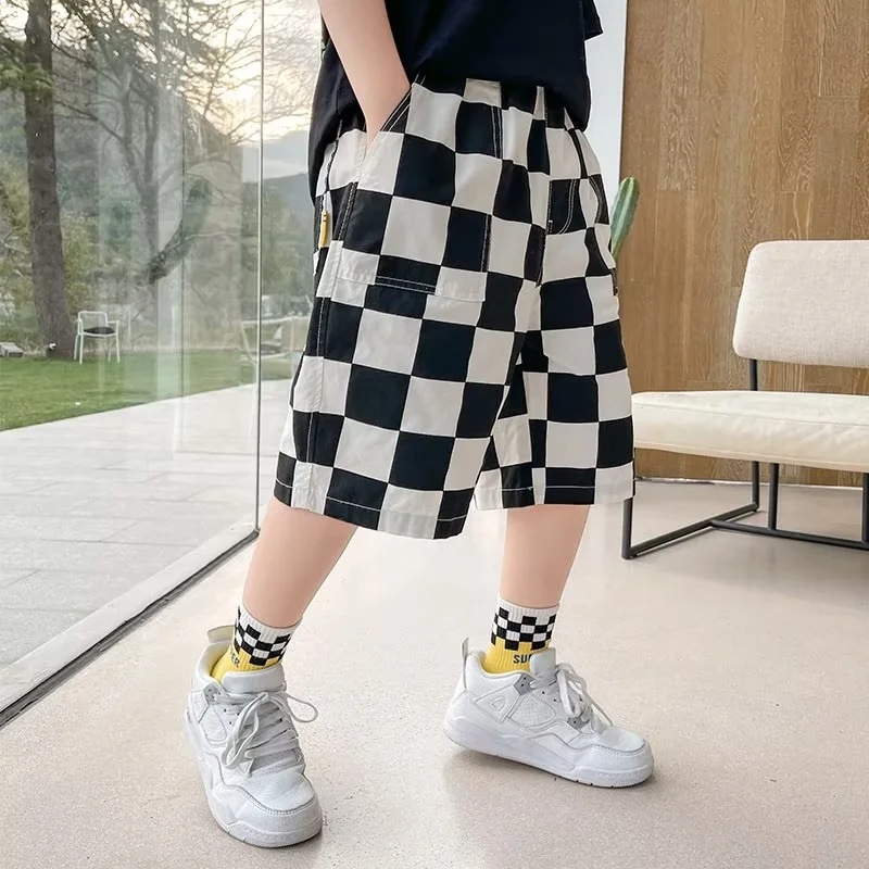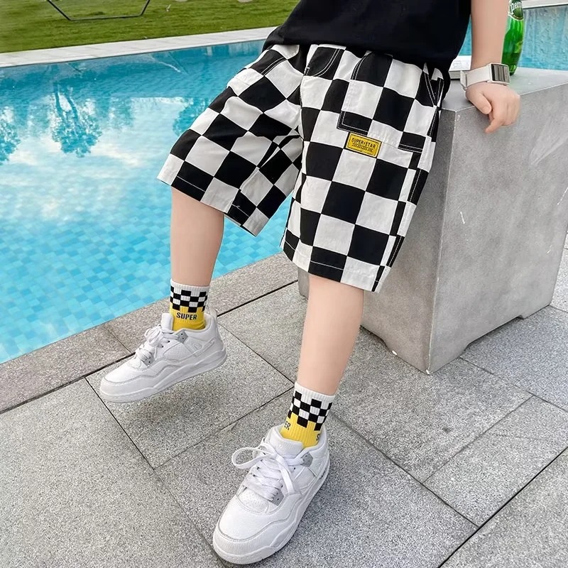 男童裤子夏季格子短裤薄款潮牌大童夏装休闲五分裤男孩中裤儿童装