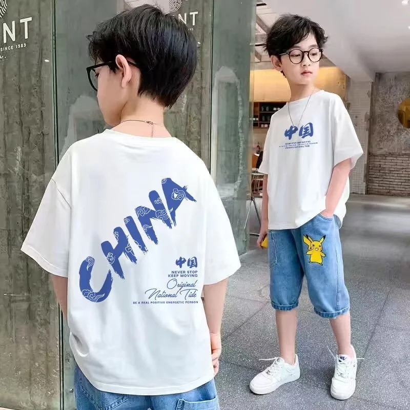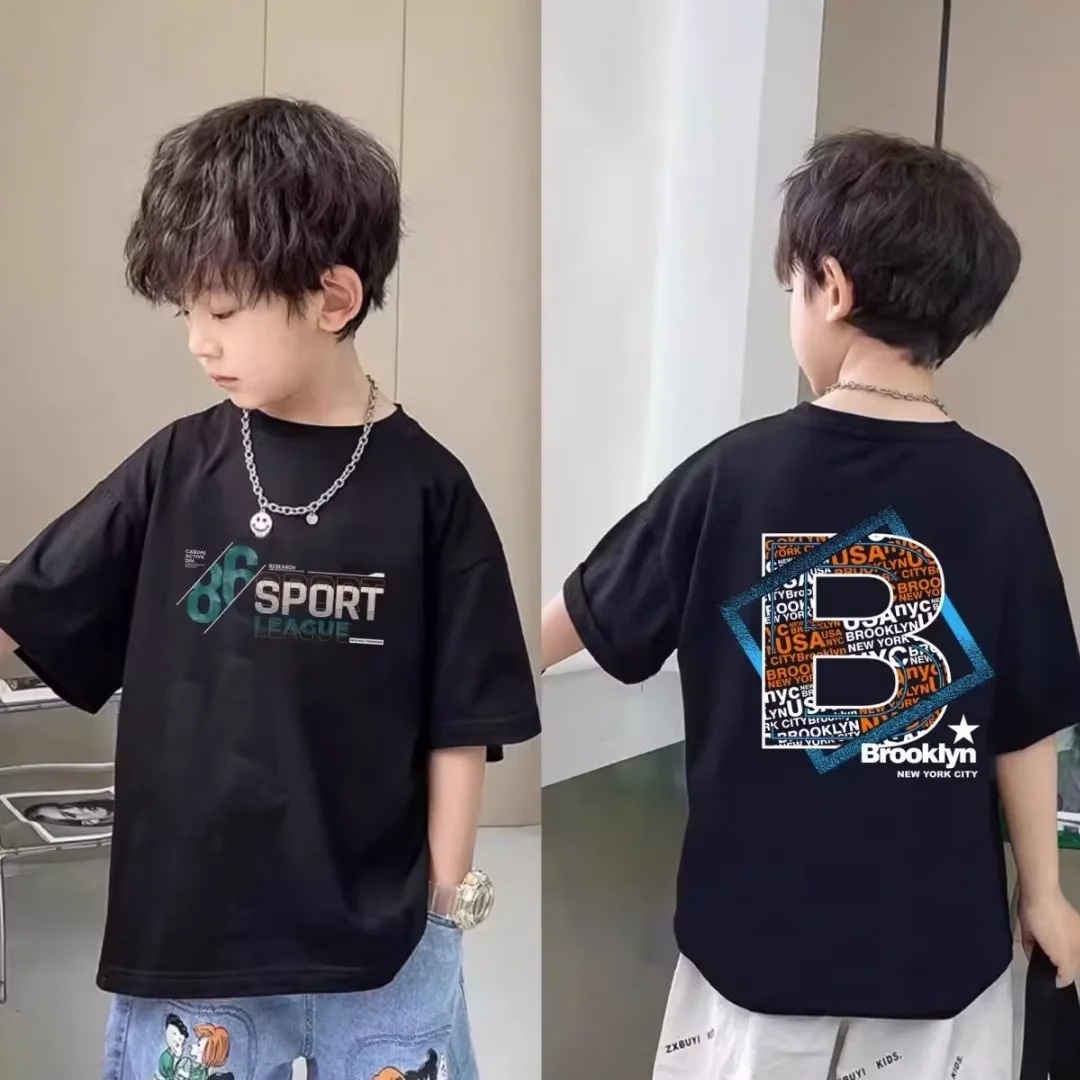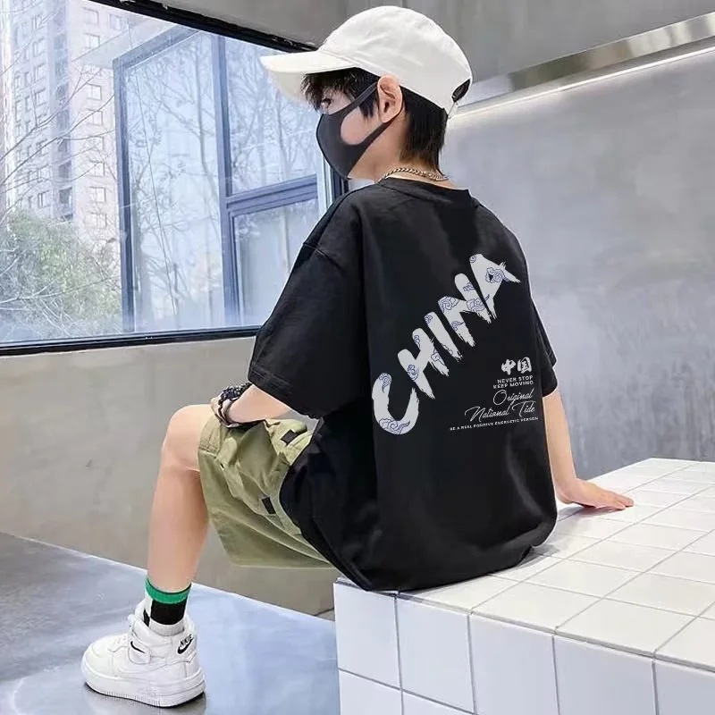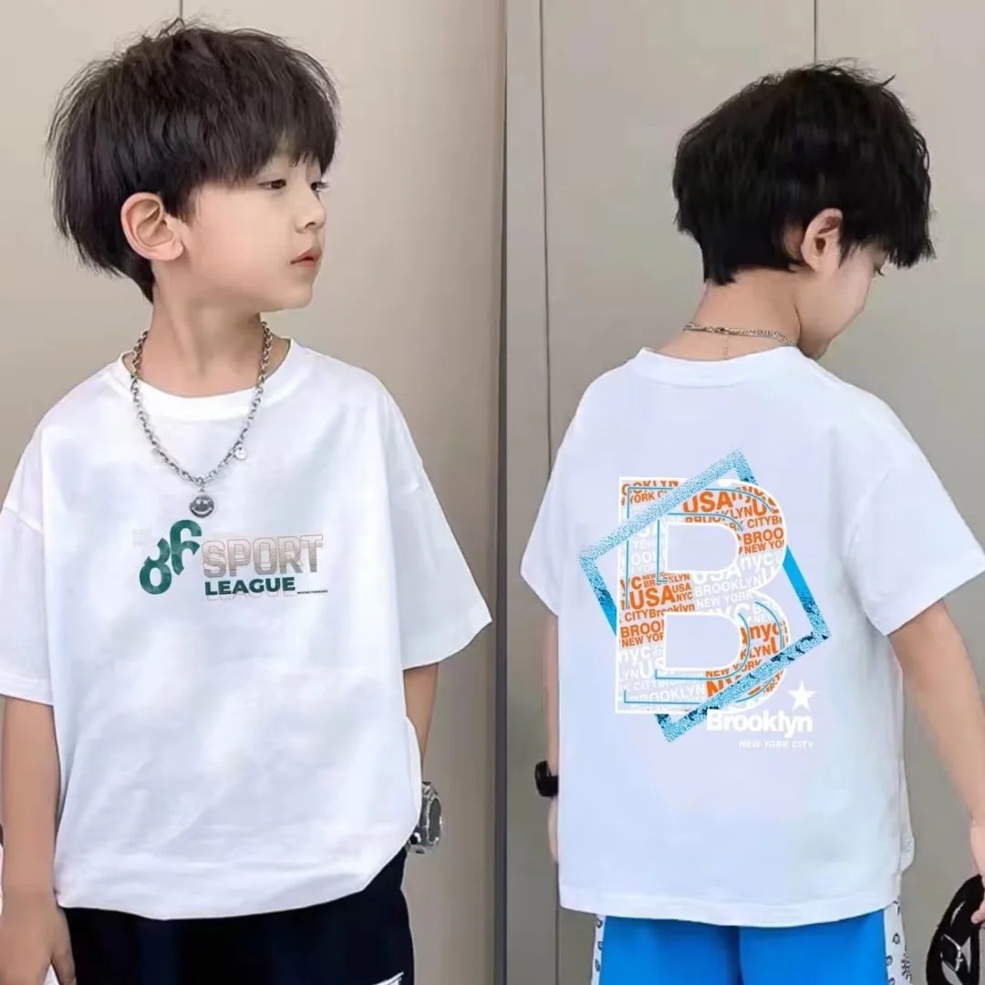 童装男童短袖t恤2023新款夏季儿童笑脸圆领上衣洋气中大童T恤潮牌