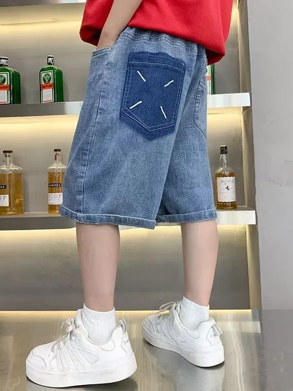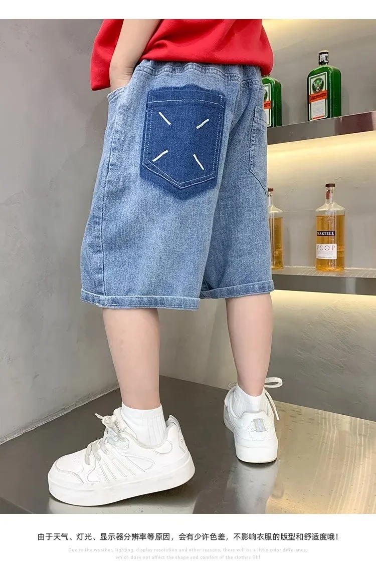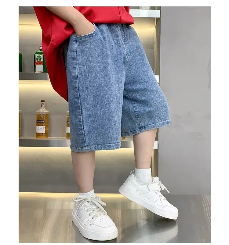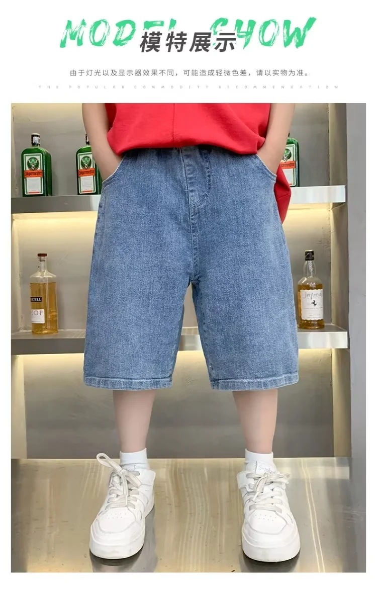男童夏季五分裤儿童柔软宽松牛仔七分中大童洋气薄款牛仔裤子炸街