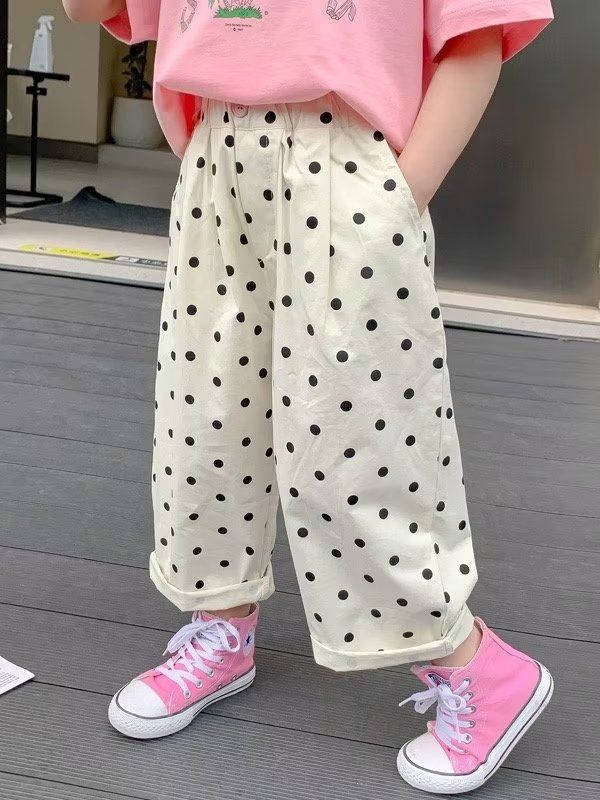 女童裤子防蚊裤2023新款儿童夏装女孩洋气波点休闲裤宝宝夏季长裤