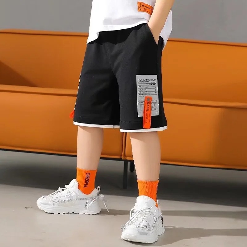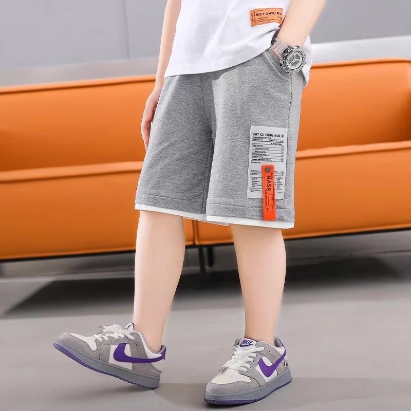 运动短裤男夏季薄款潮牌外穿五分裤子男士宽松假两件贴标休闲中裤
