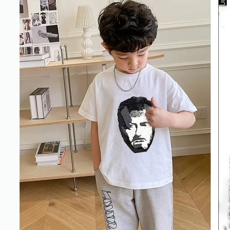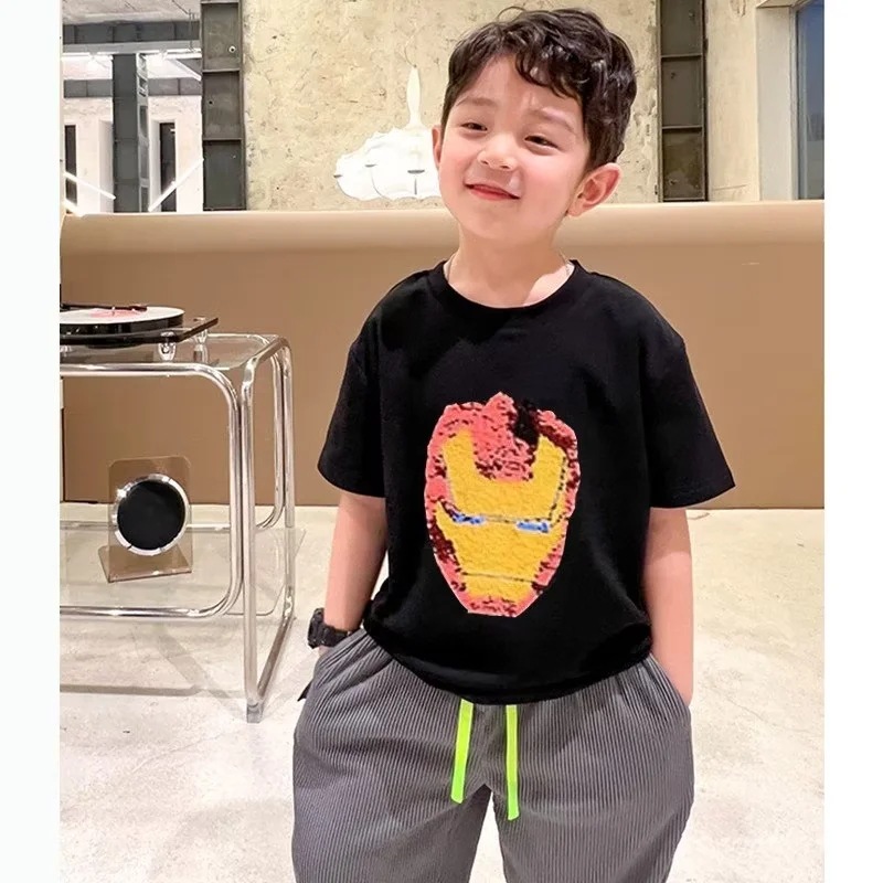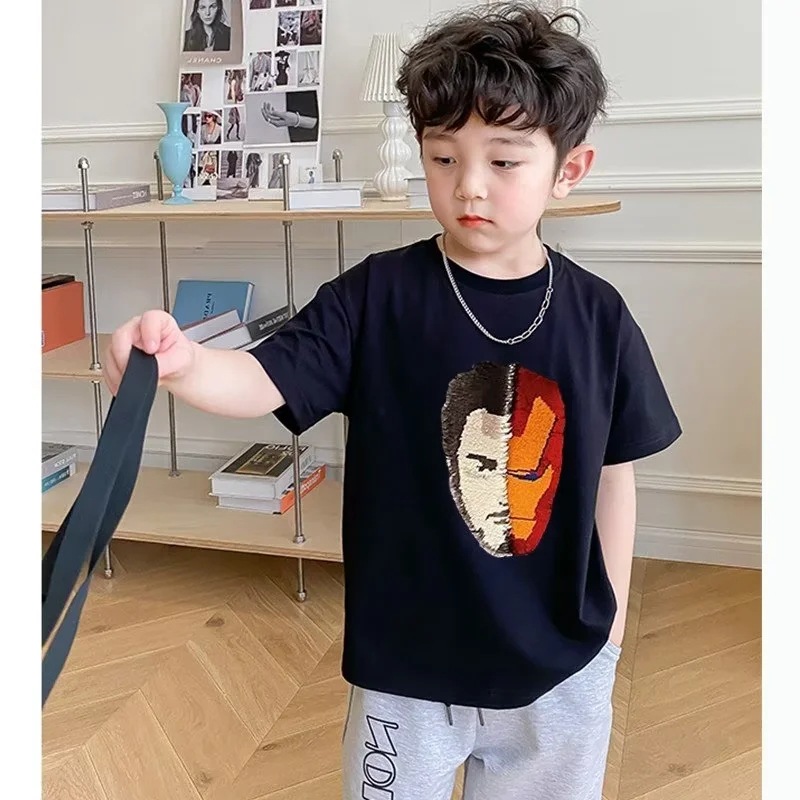 男童夏季短袖亮片T恤纯棉新款中小童变色超人翻转珠片洋气上衣潮t