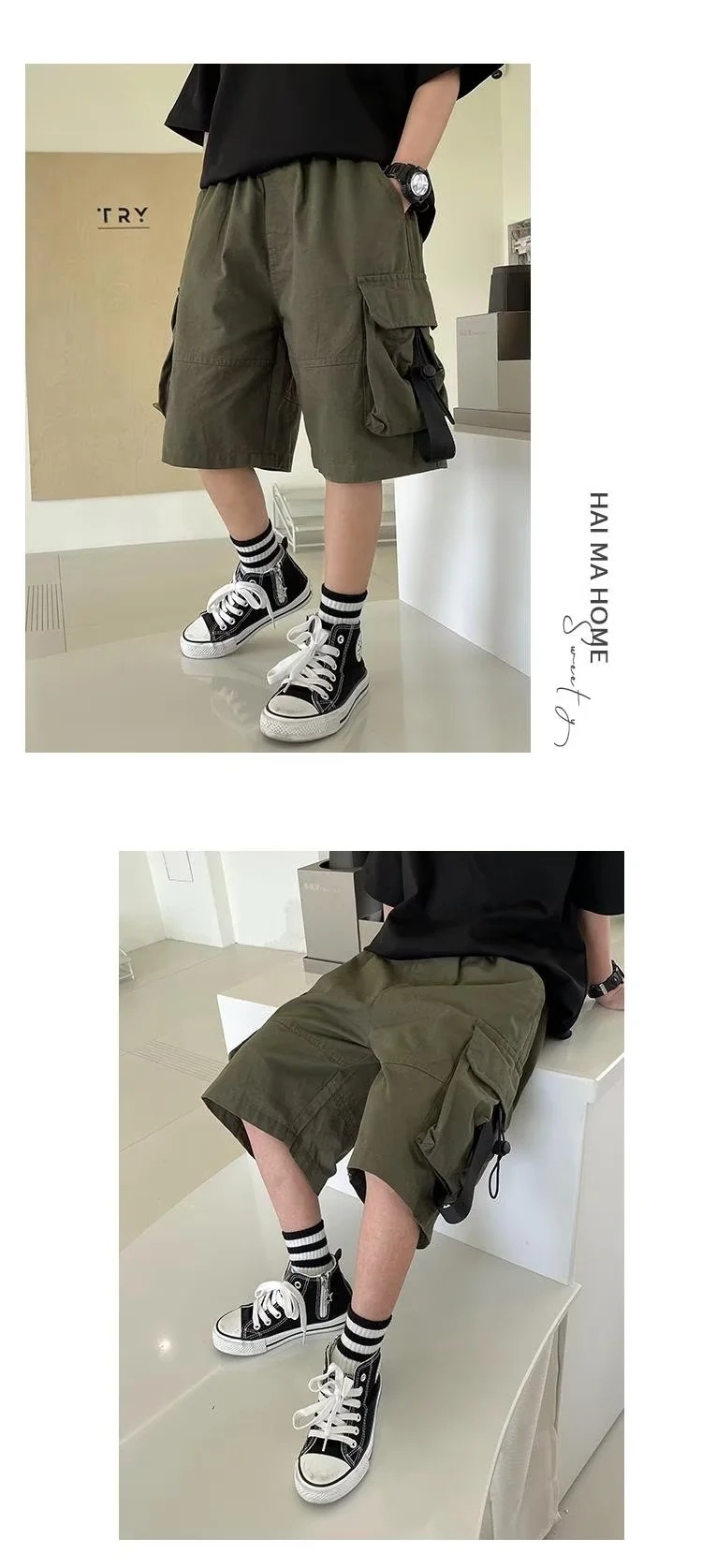 男童工装短裤夏装2023新款中裤童装日系潮牌夏款大童儿童夏季裤子