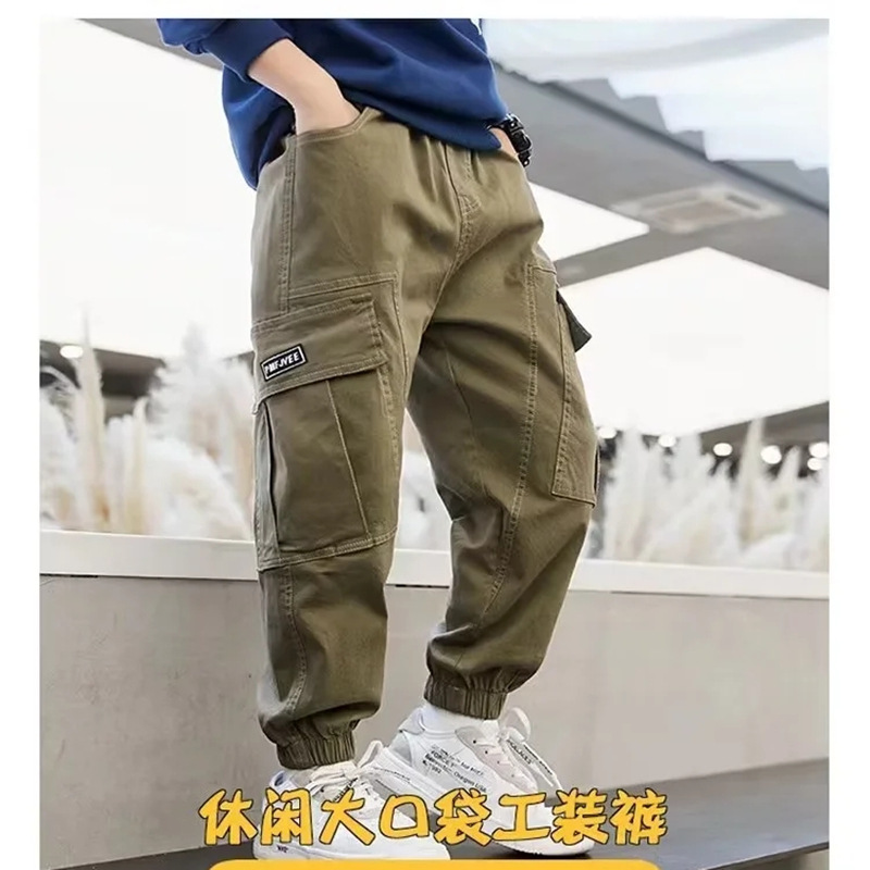 男童裤子春秋款儿童时尚休闲裤帅气大口袋2023新款男孩炸街工装裤