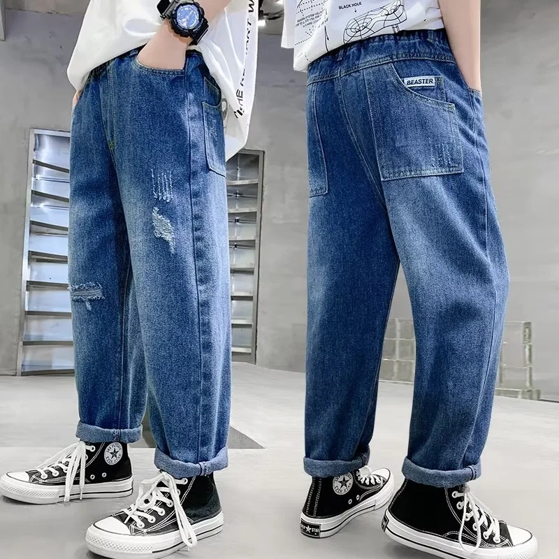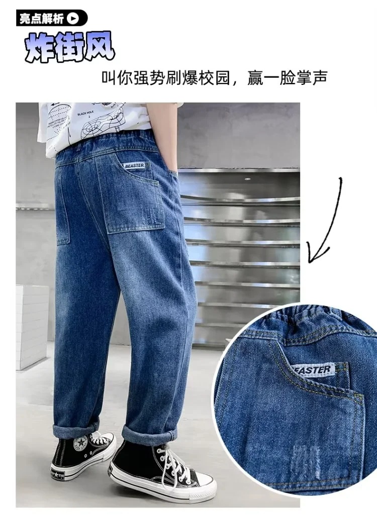 男童牛仔裤春秋款2023新款儿童秋季裤子中大童潮酷帅气大男孩秋装