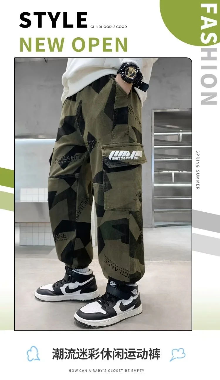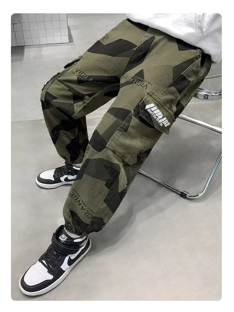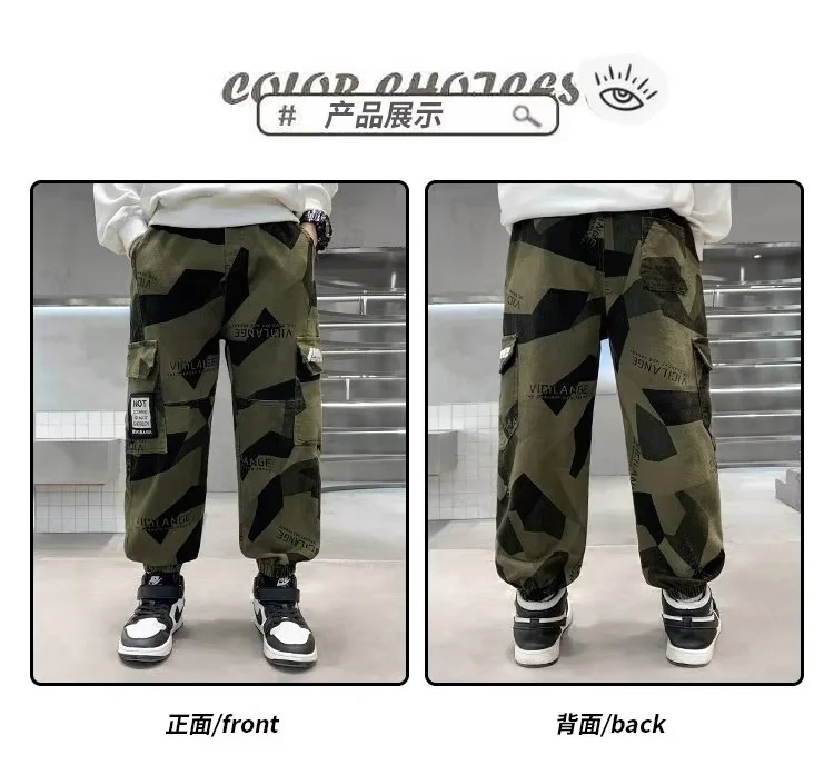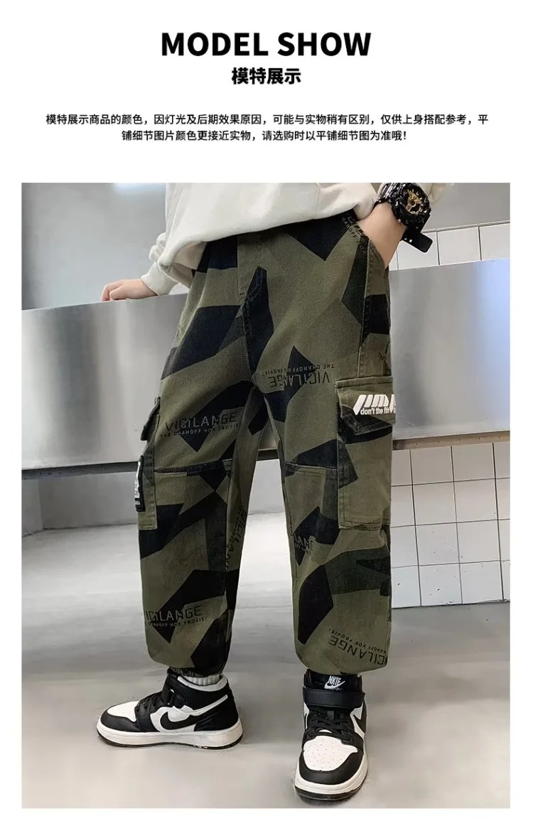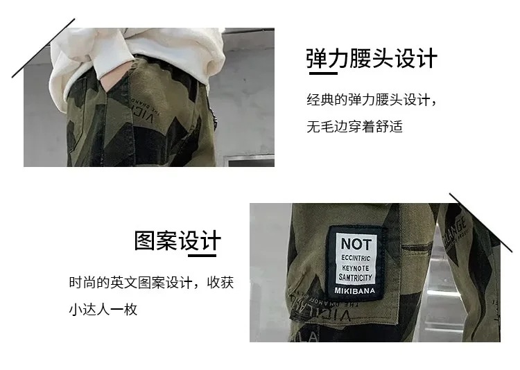 男童军绿迷彩裤潮酷痞帅气2023新款儿童宽松弹力中大童休闲裤长裤