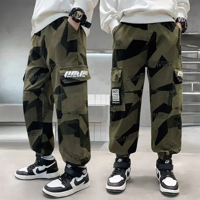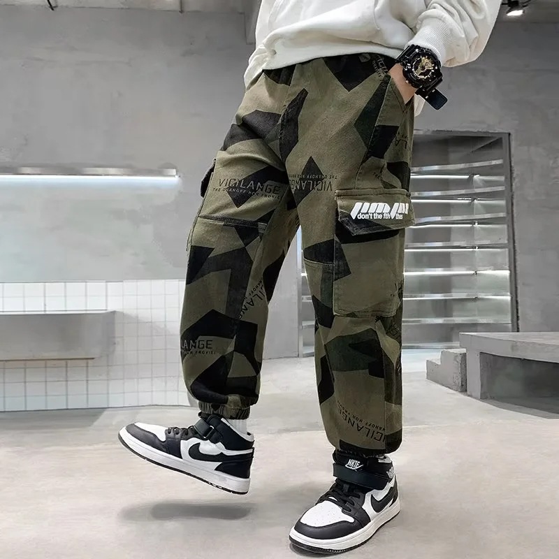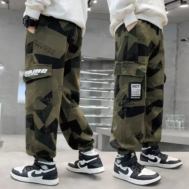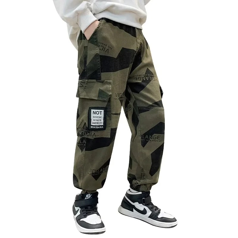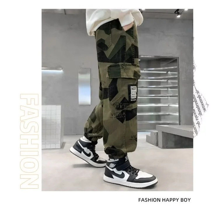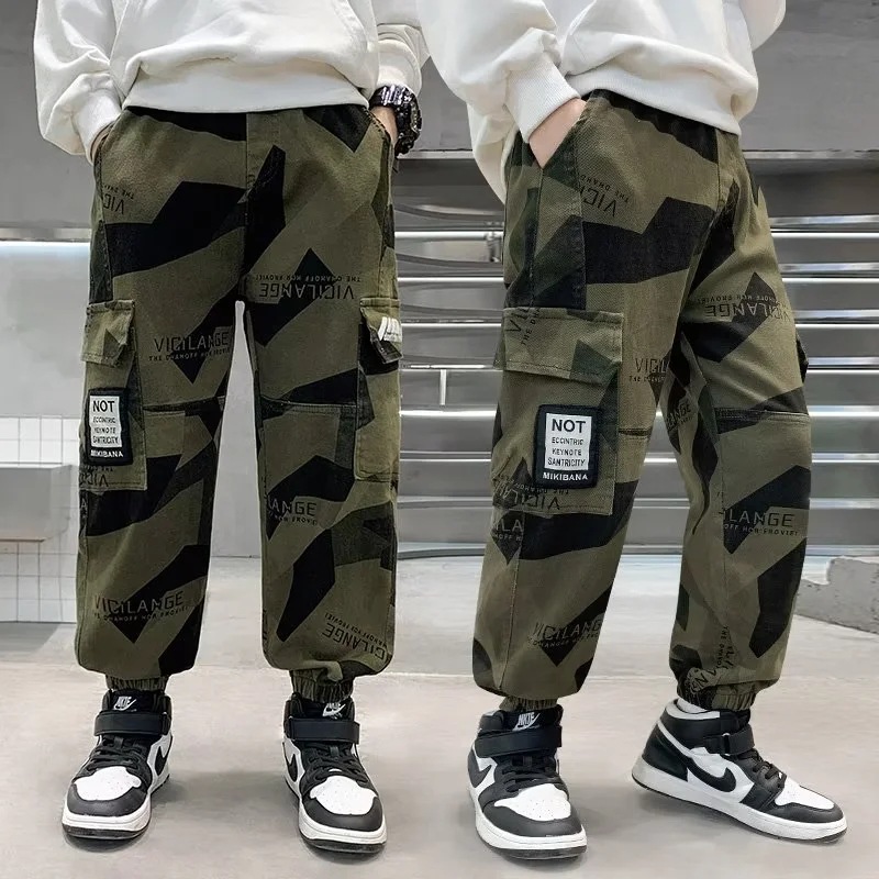 男童军绿迷彩裤潮酷痞帅气2023新款儿童宽松弹力中大童休闲裤长裤