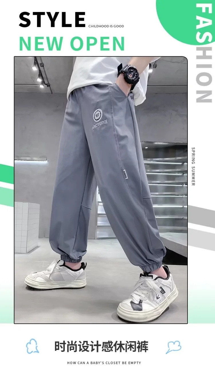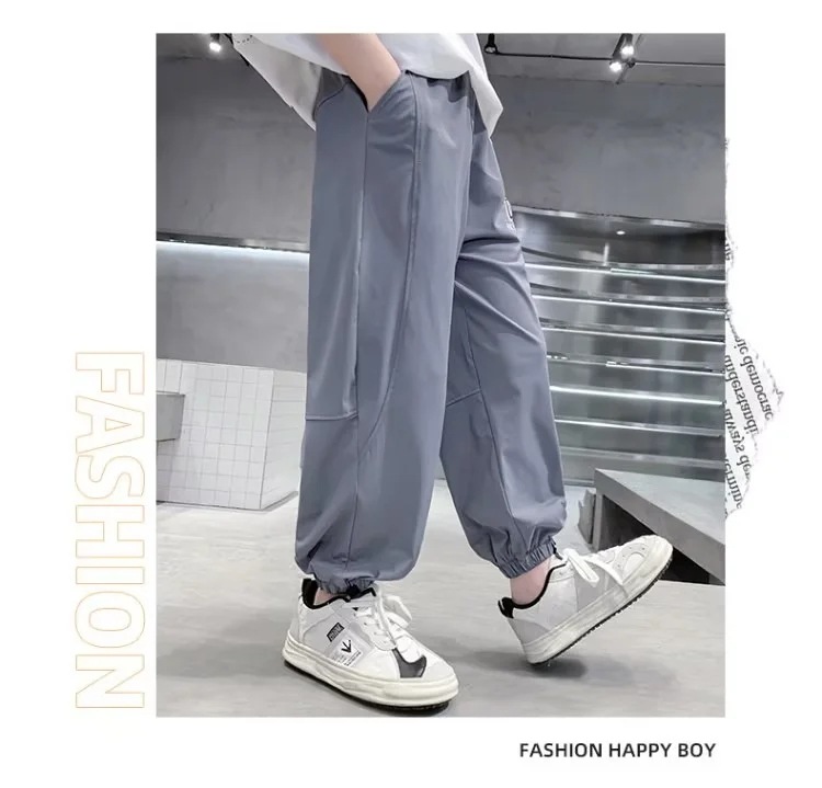 男童裤子夏装儿童防蚊裤2023新款炸街百搭中大童宽松薄款冰丝长裤