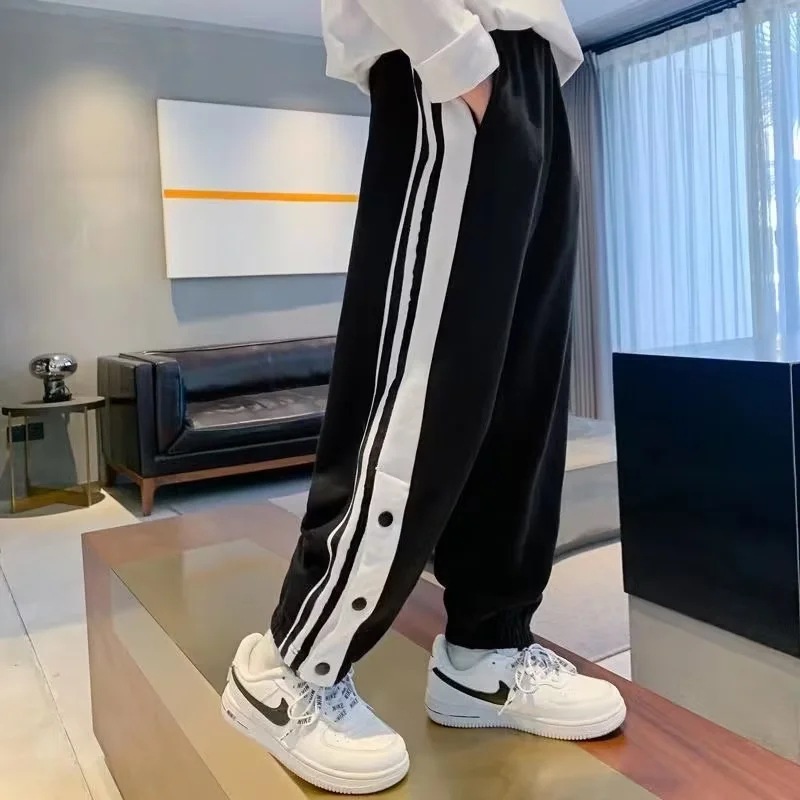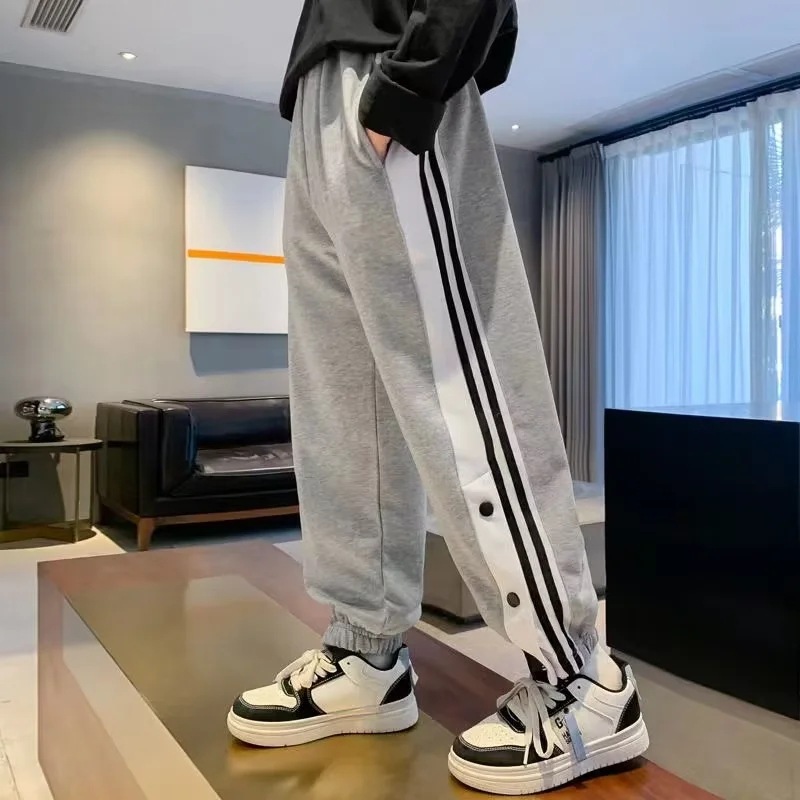 童装男童裤子春秋季2023新款中大童痞帅男孩排扣长裤儿童运动卫裤