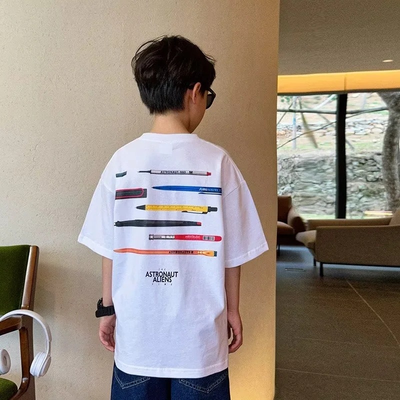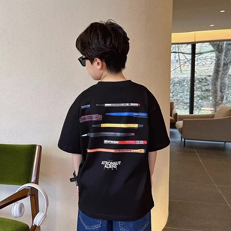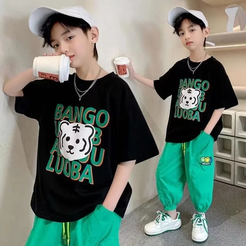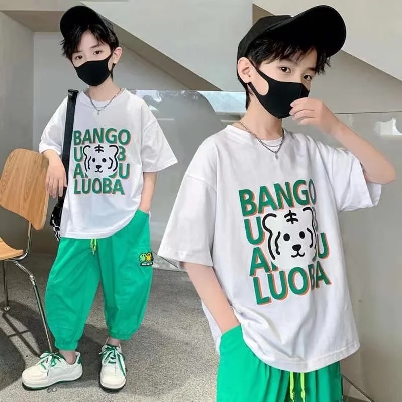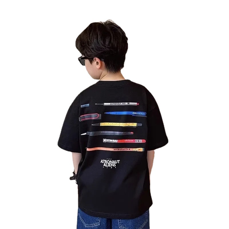 男童夏装短袖薄款t恤夏季中大童2023新款儿童装休闲五分袖T恤潮牌