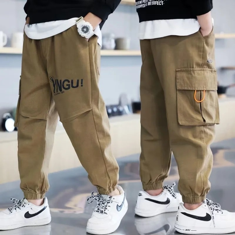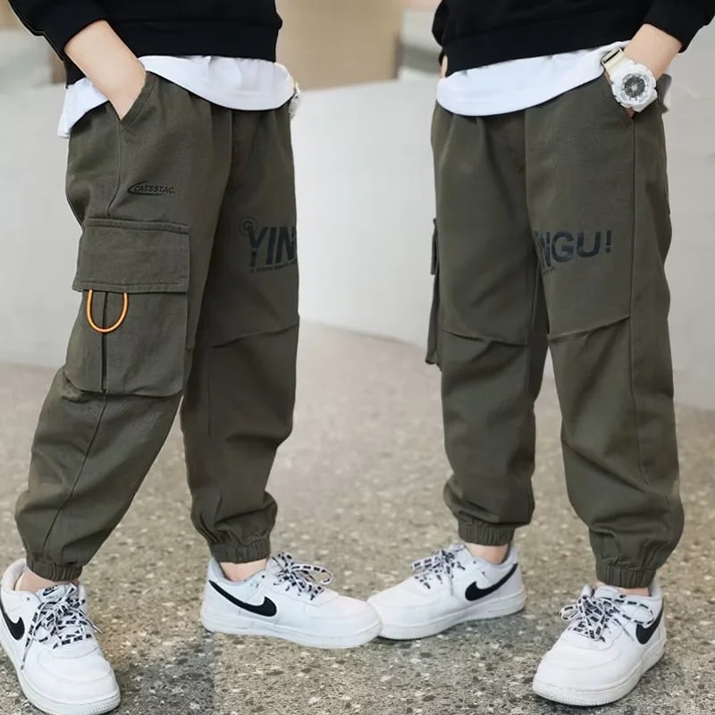 男大童装工装裤子帅气长裤春秋中大童运动裤宽松束脚棉休闲裤潮牌