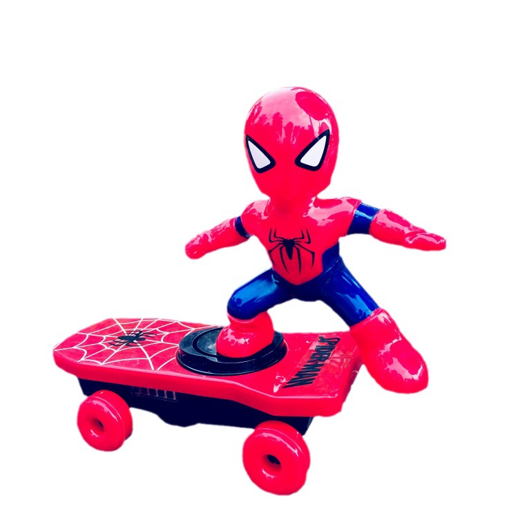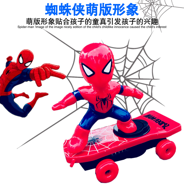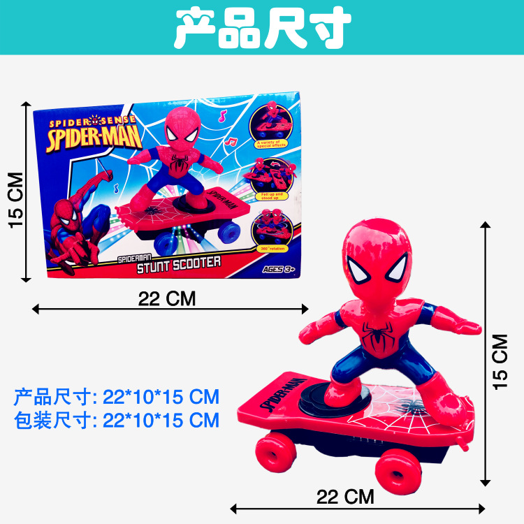 现货抖音同款蜘蛛侠特技滑板车带灯光音乐万向电动玩具车一件代发