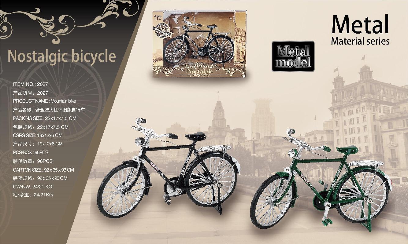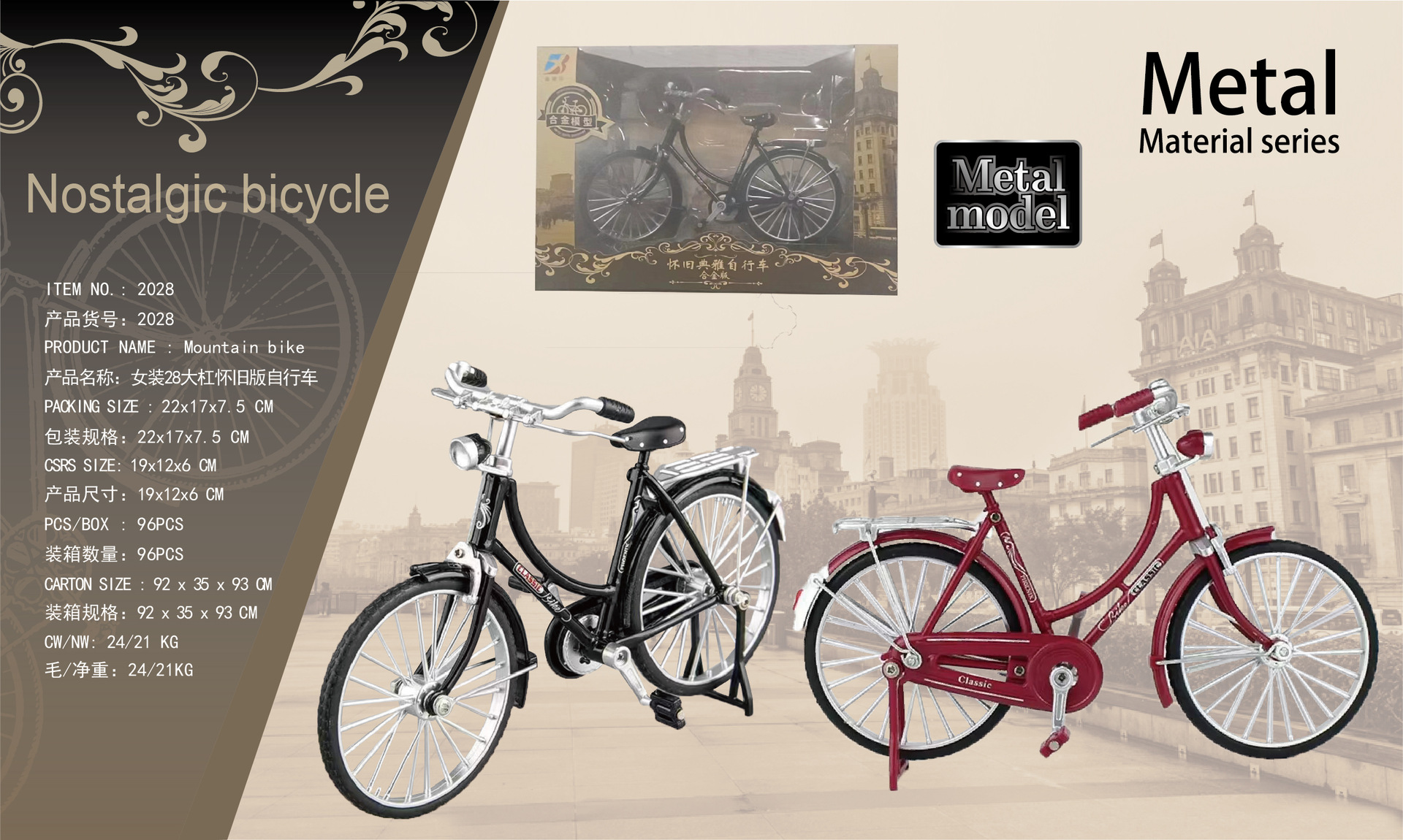 1:8儿童玩具单车摆件自行车模型二八大杠怀旧仿真合金复古经典