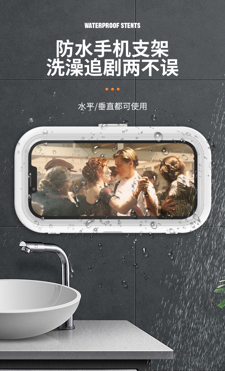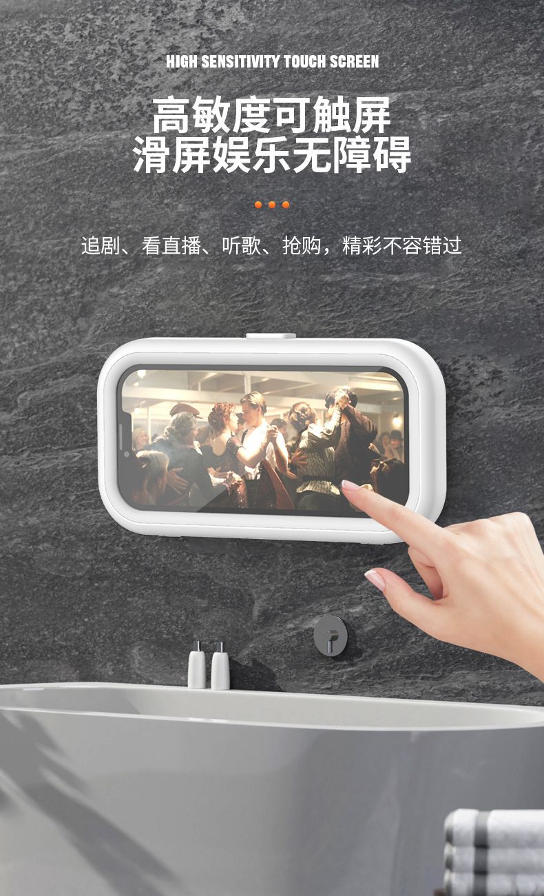 浴室防水手机盒免打孔卫生间墙壁挂香薰厨房置物架可旋转追剧神器