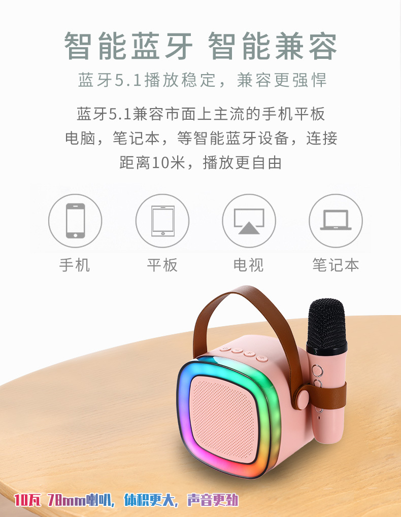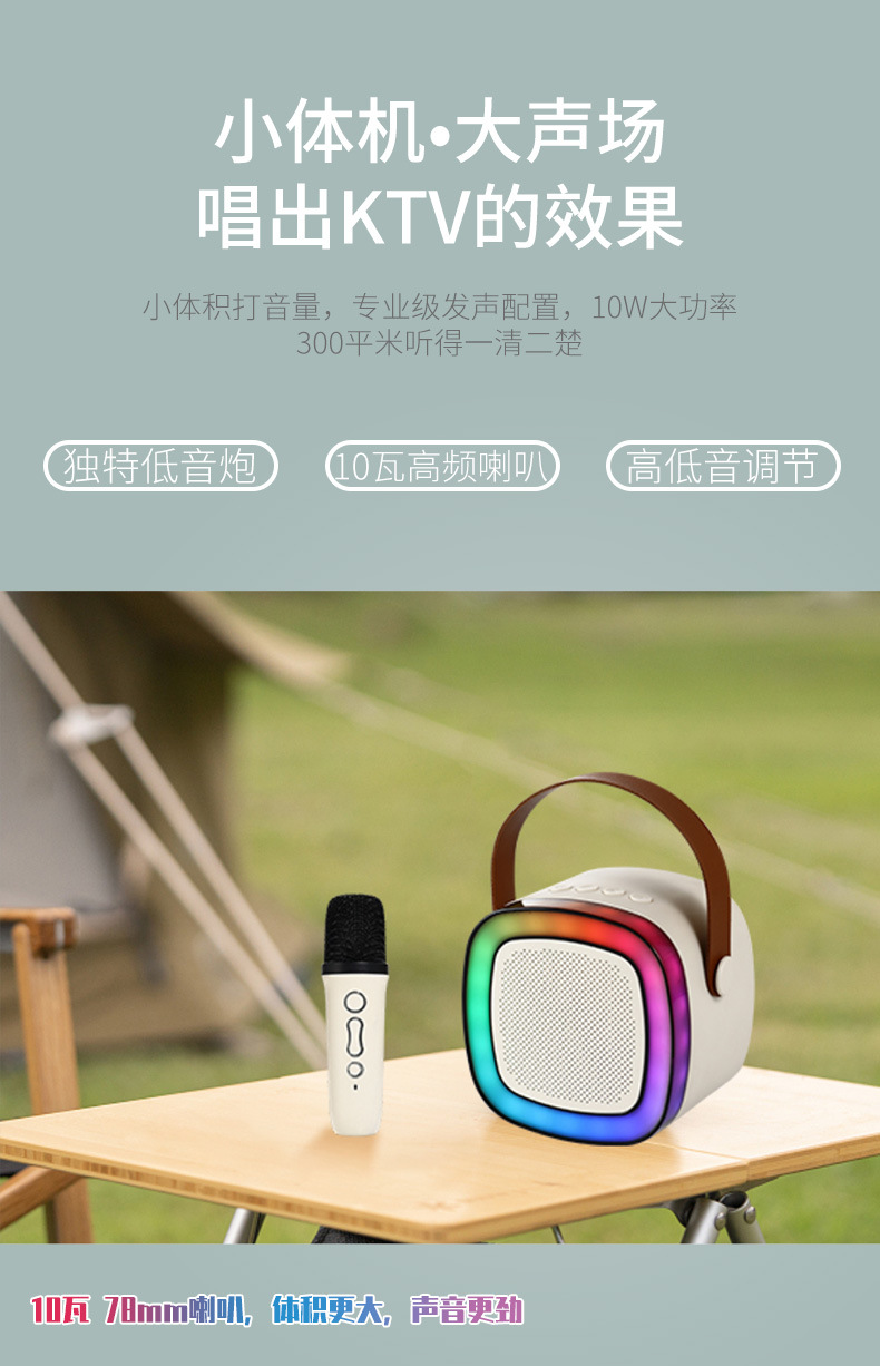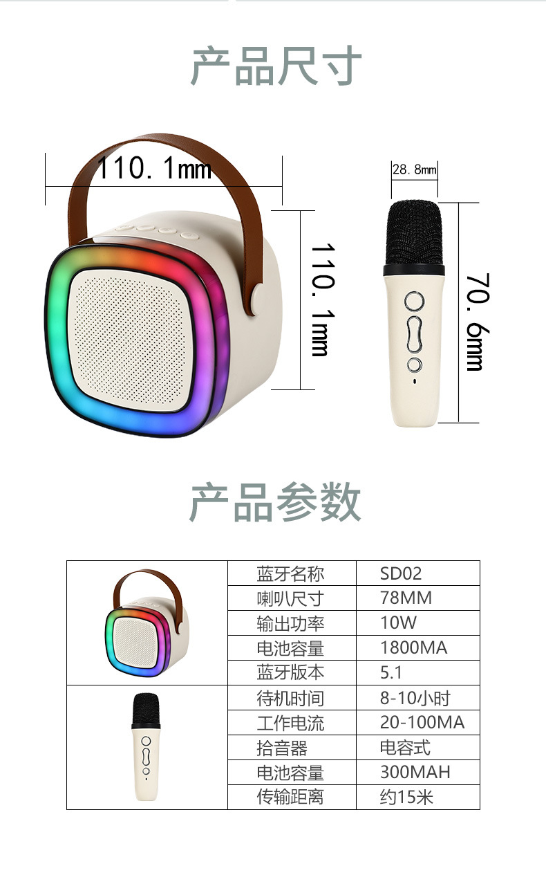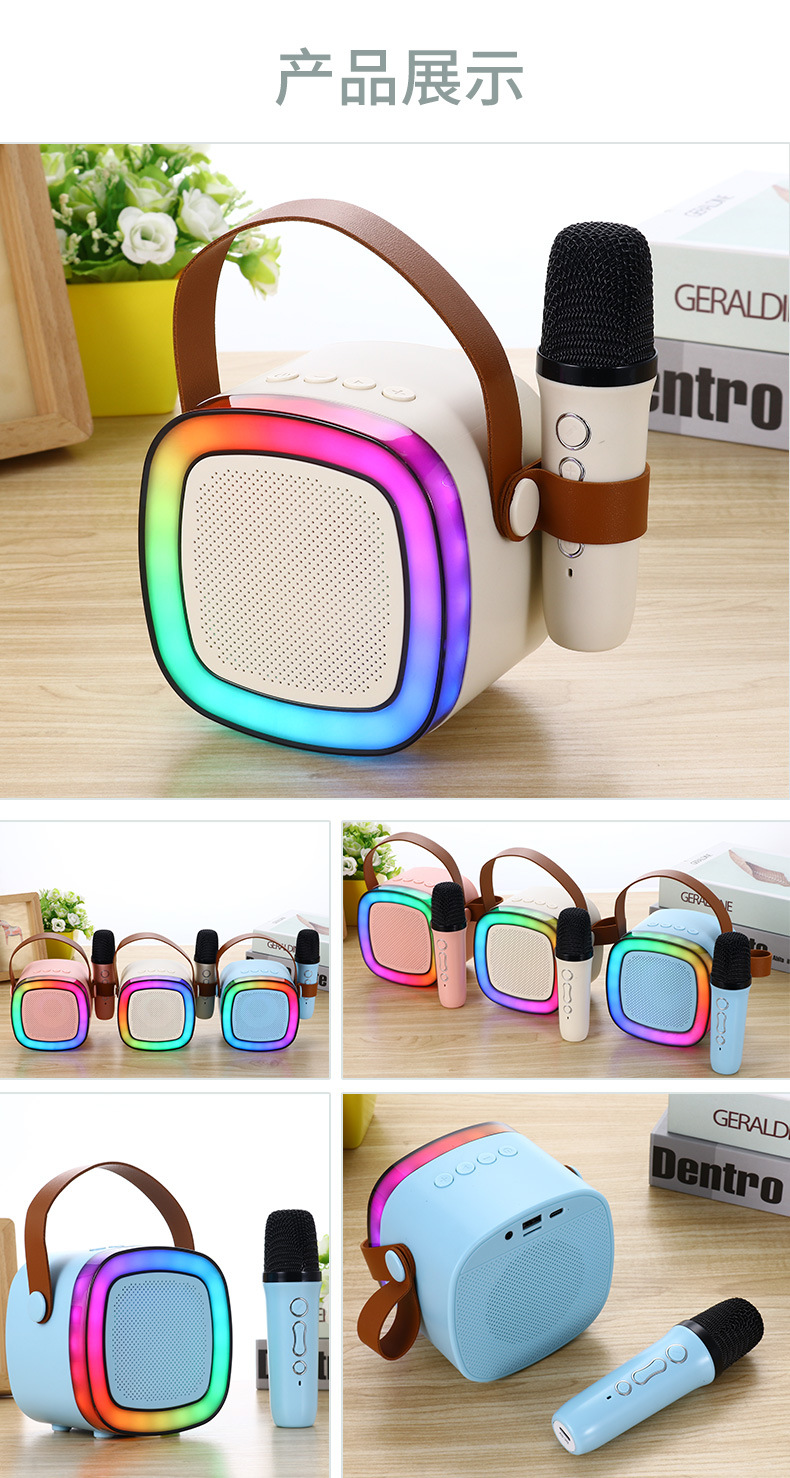 新款SD02蓝牙话筒音箱户外手提家用KTV无线便携式K歌幻彩灯话筒
